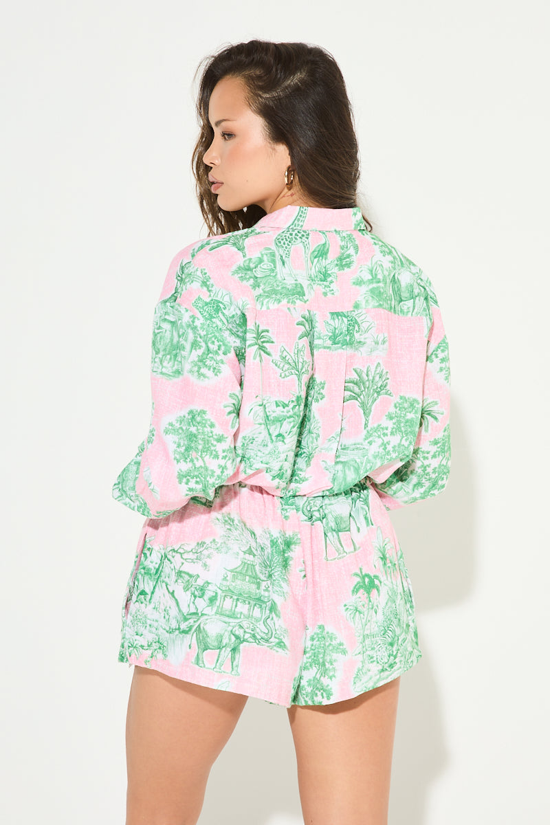 Get ready for some fun in the sun with our CALIFORNIA BREEZE Printed Shorts. Featuring a playful pink color and a tropical palm tree print, these shorts are perfect for any summer occasion. Don't miss out on adding some fun to your wardrobe!