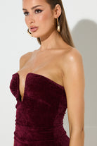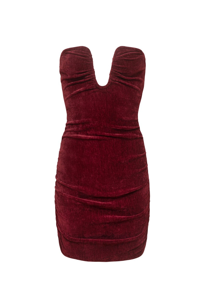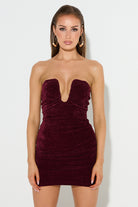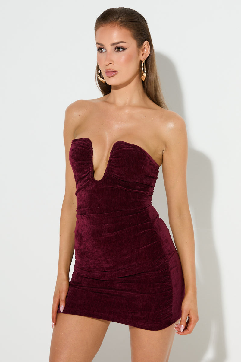 CAMILLA Burgundy Velvet Plunge Mini Dress