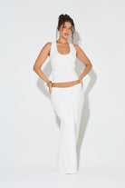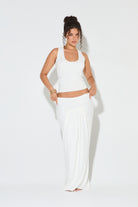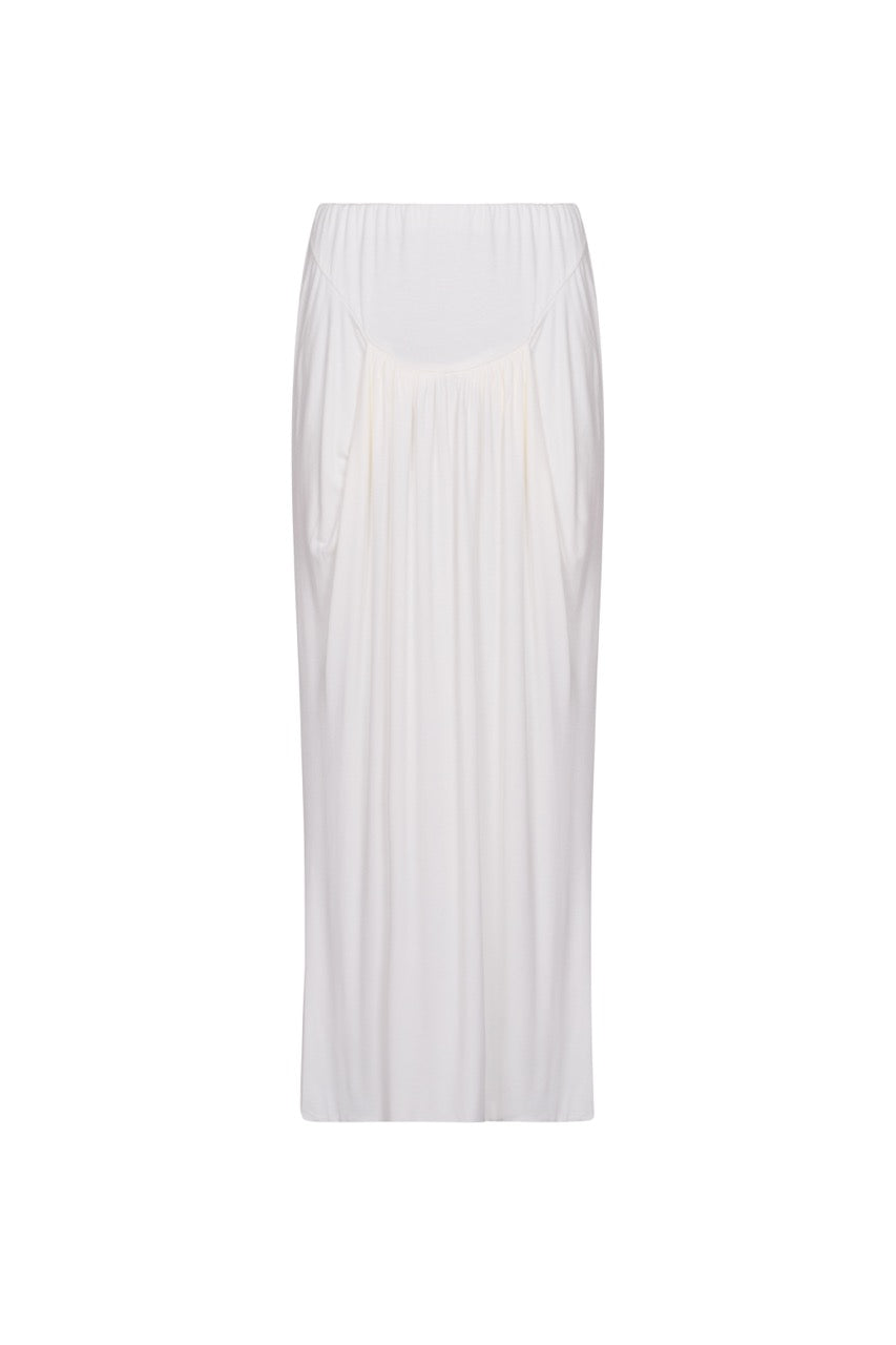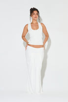 LUCIA White Draped Low Rise Maxi Skirt