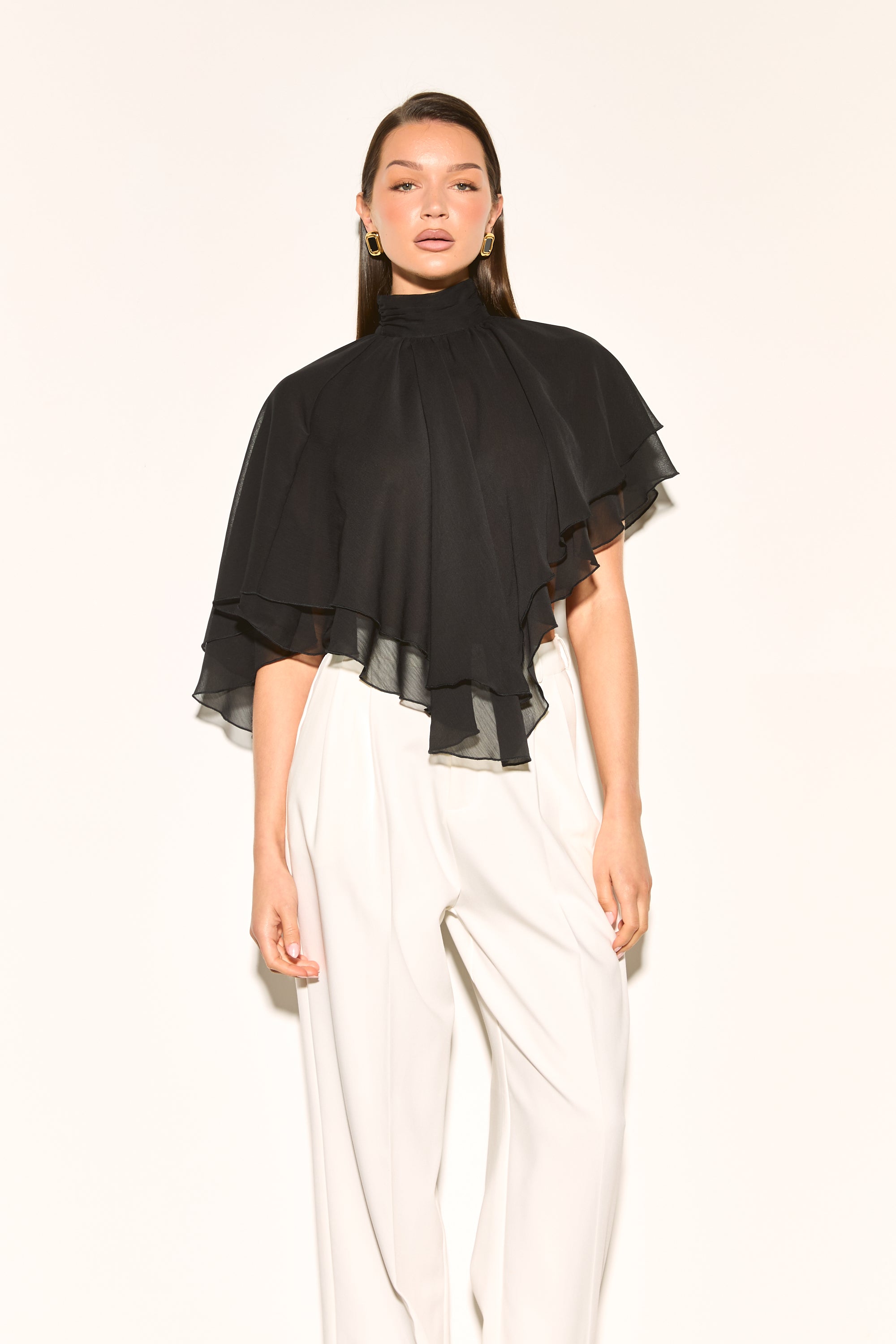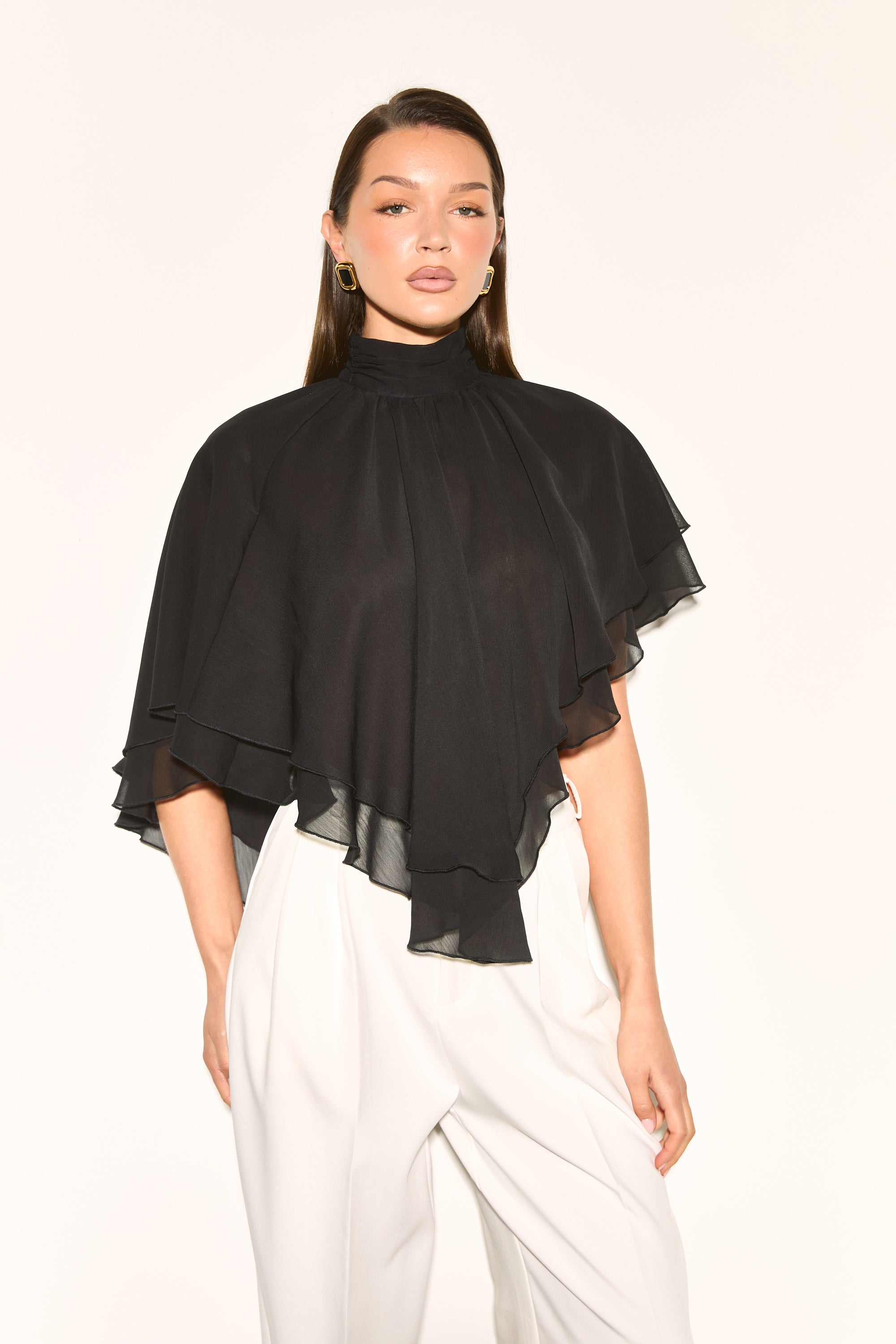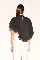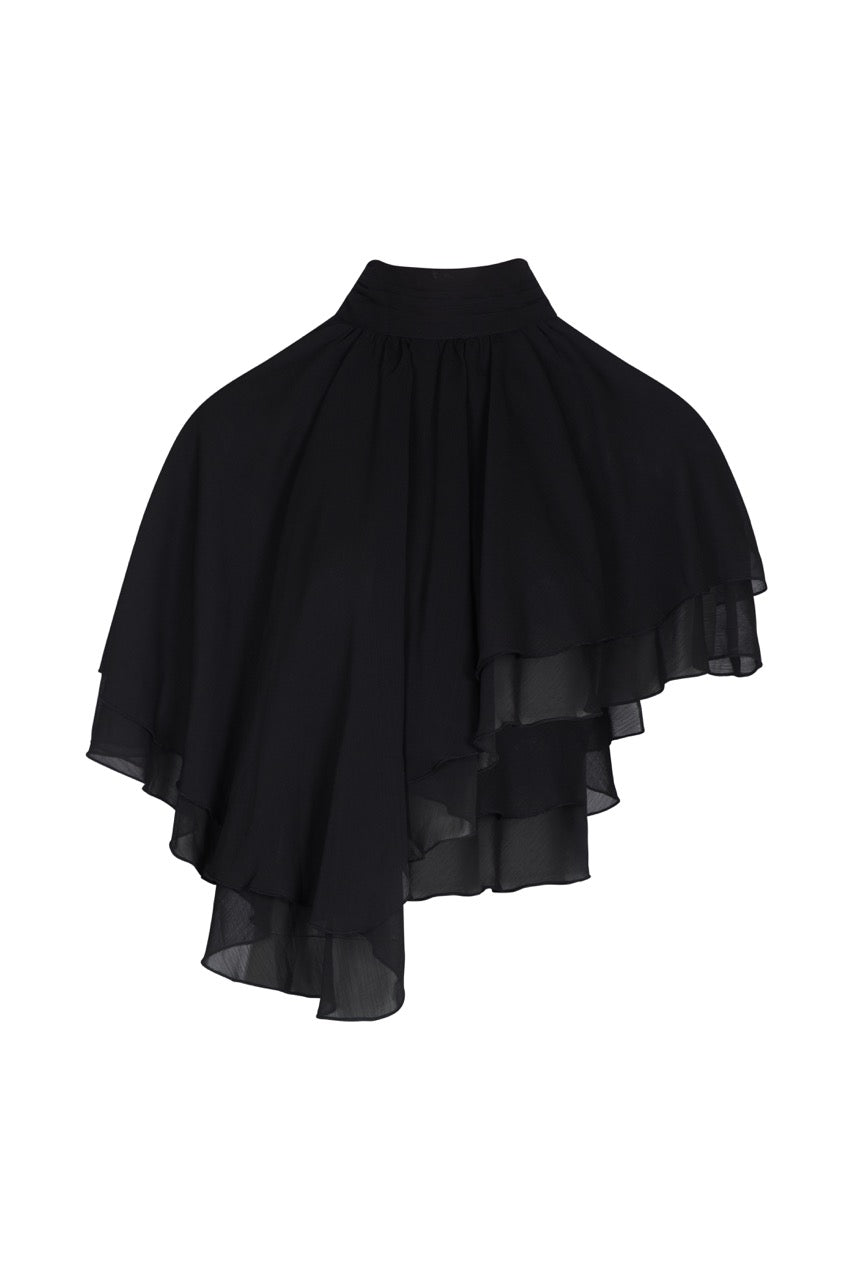 ALMA Black High Neck Cape Waterfall Top