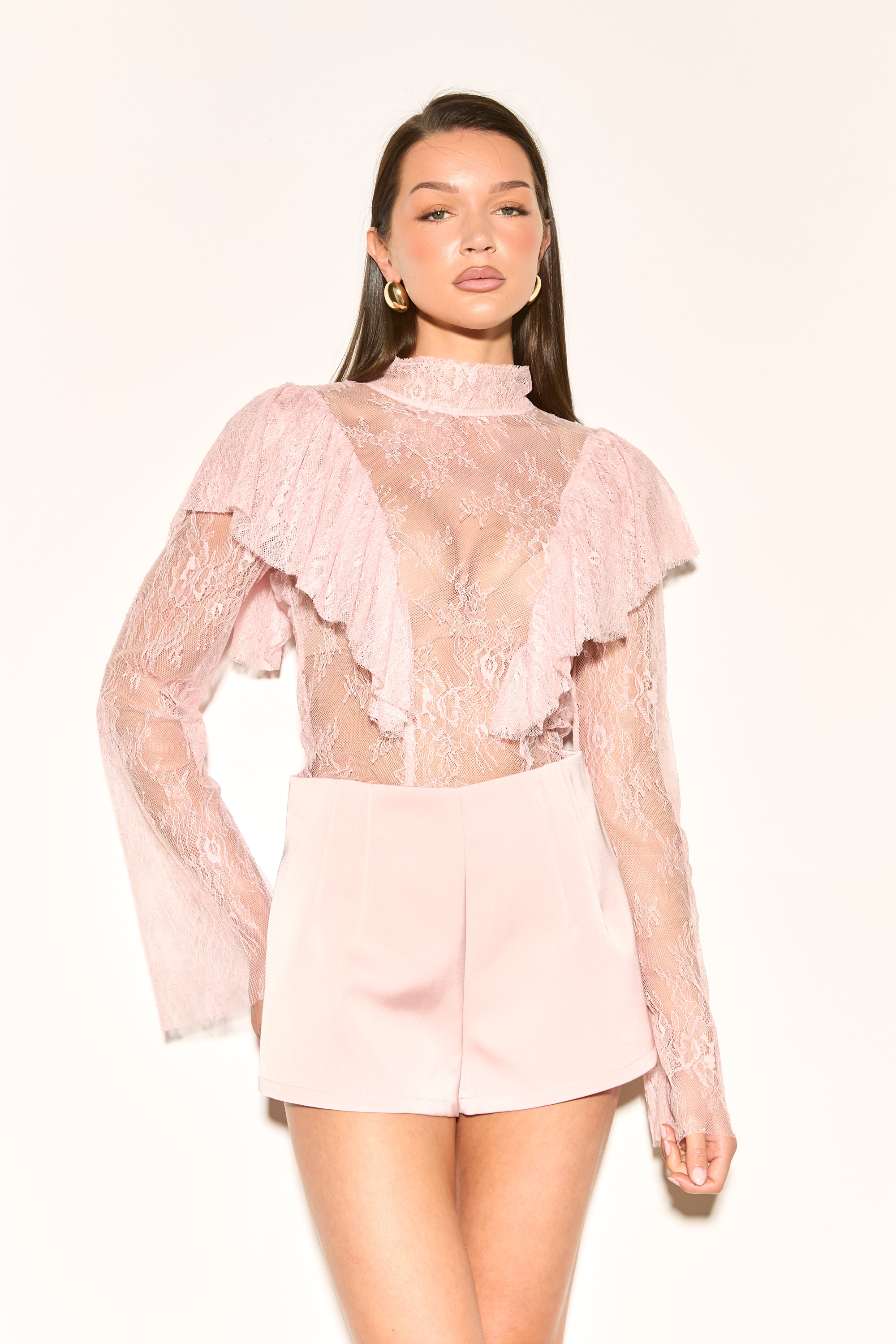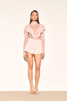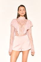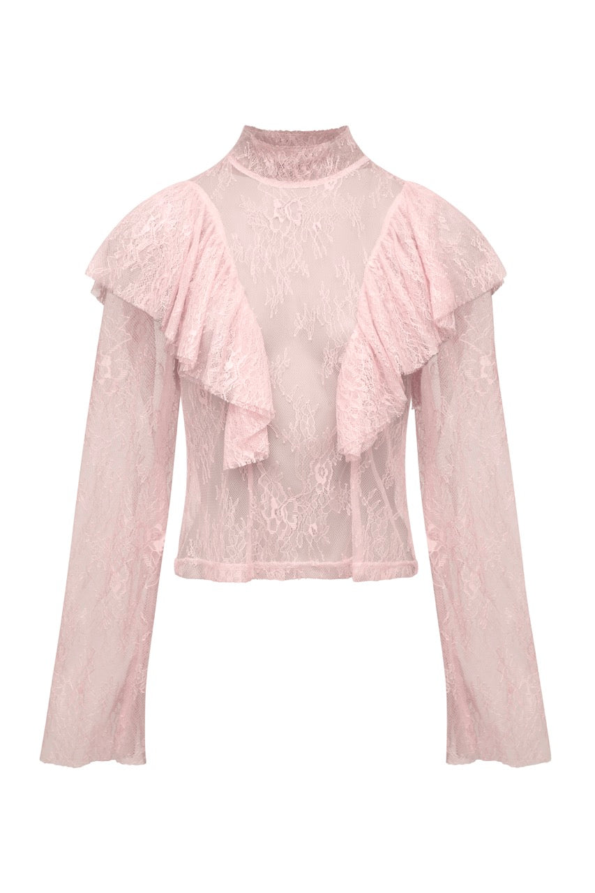 PENELOPE Pink Lace Ruffle Blouse