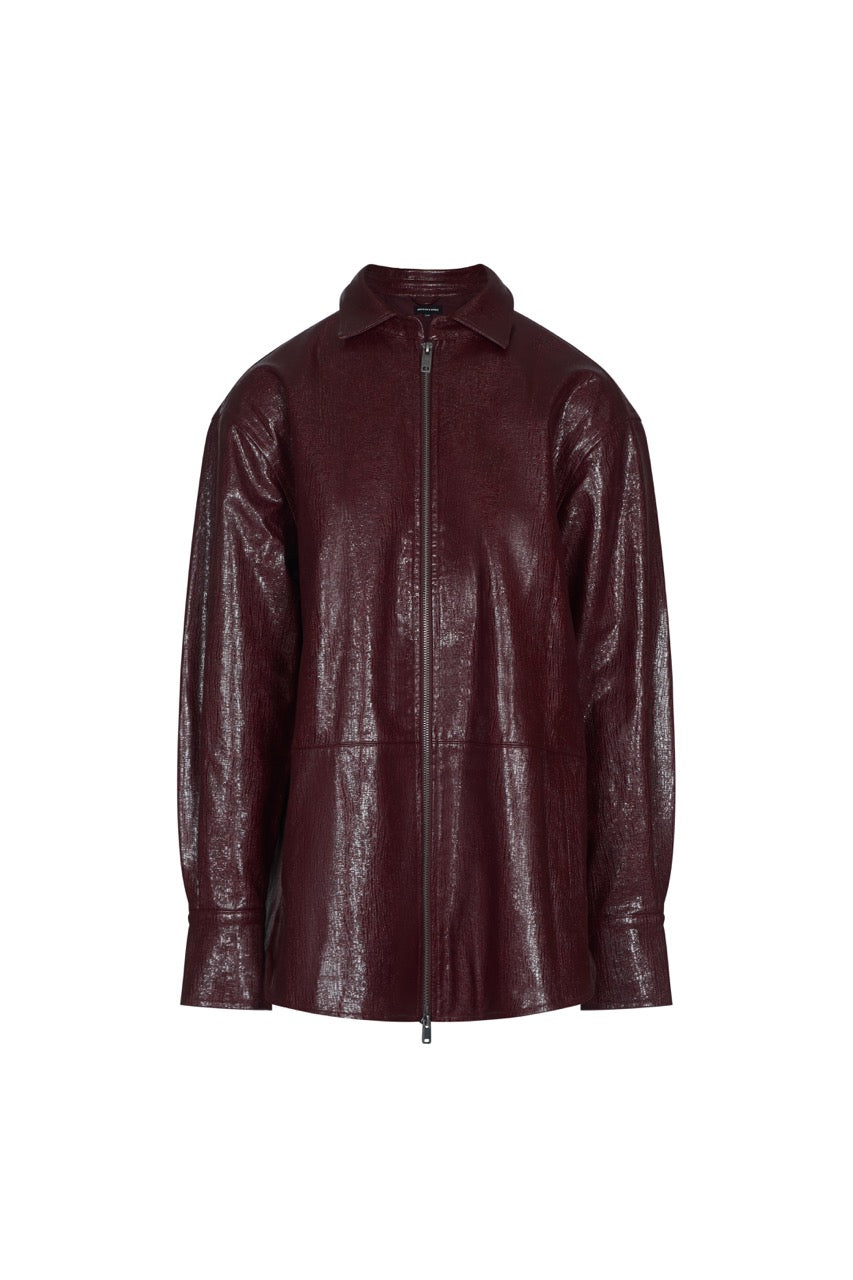 ATHENA Burgundy Vinyl Oversized Zip Front Shirt