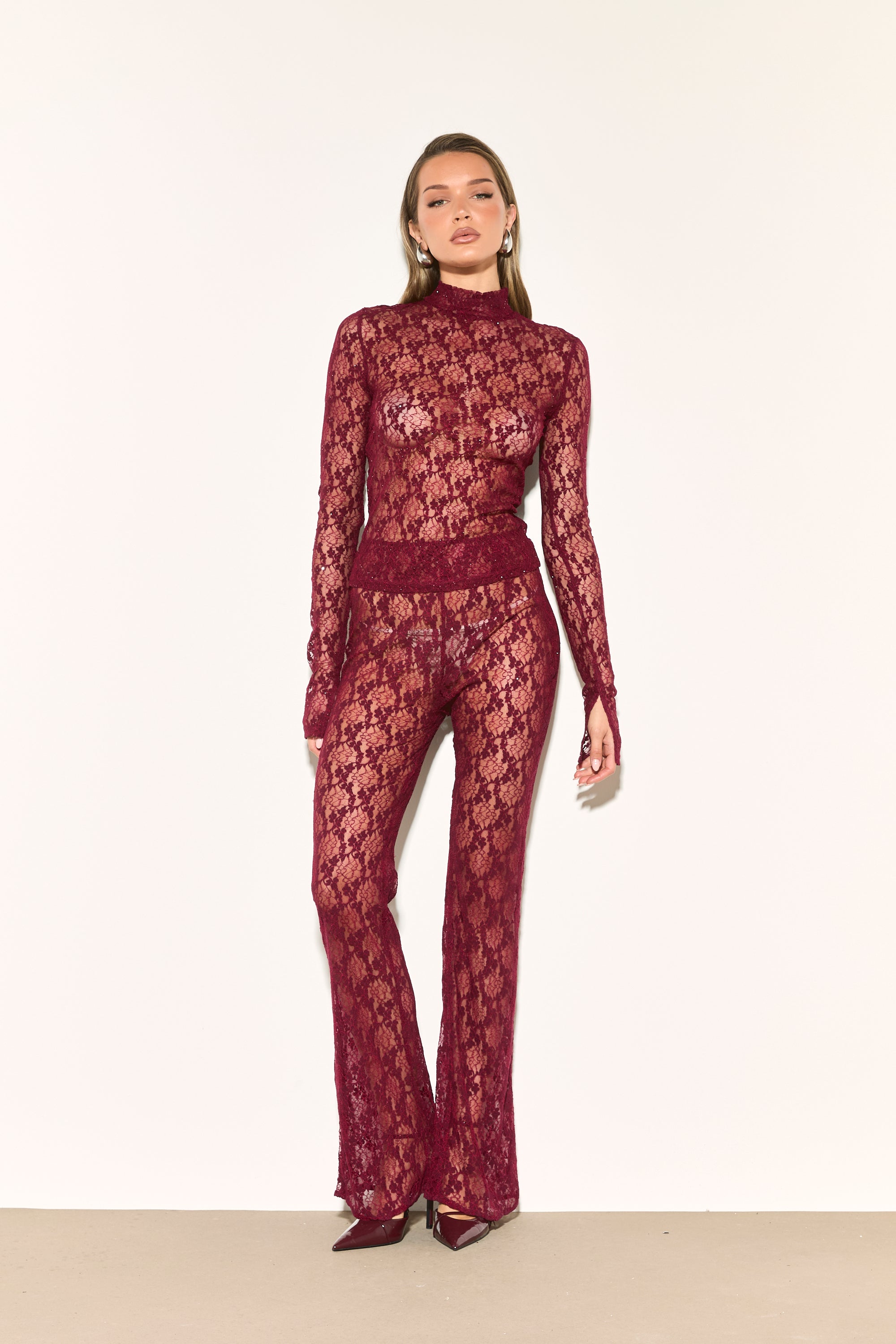 JORDYN Burgundy Lace Trousers
