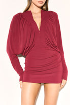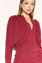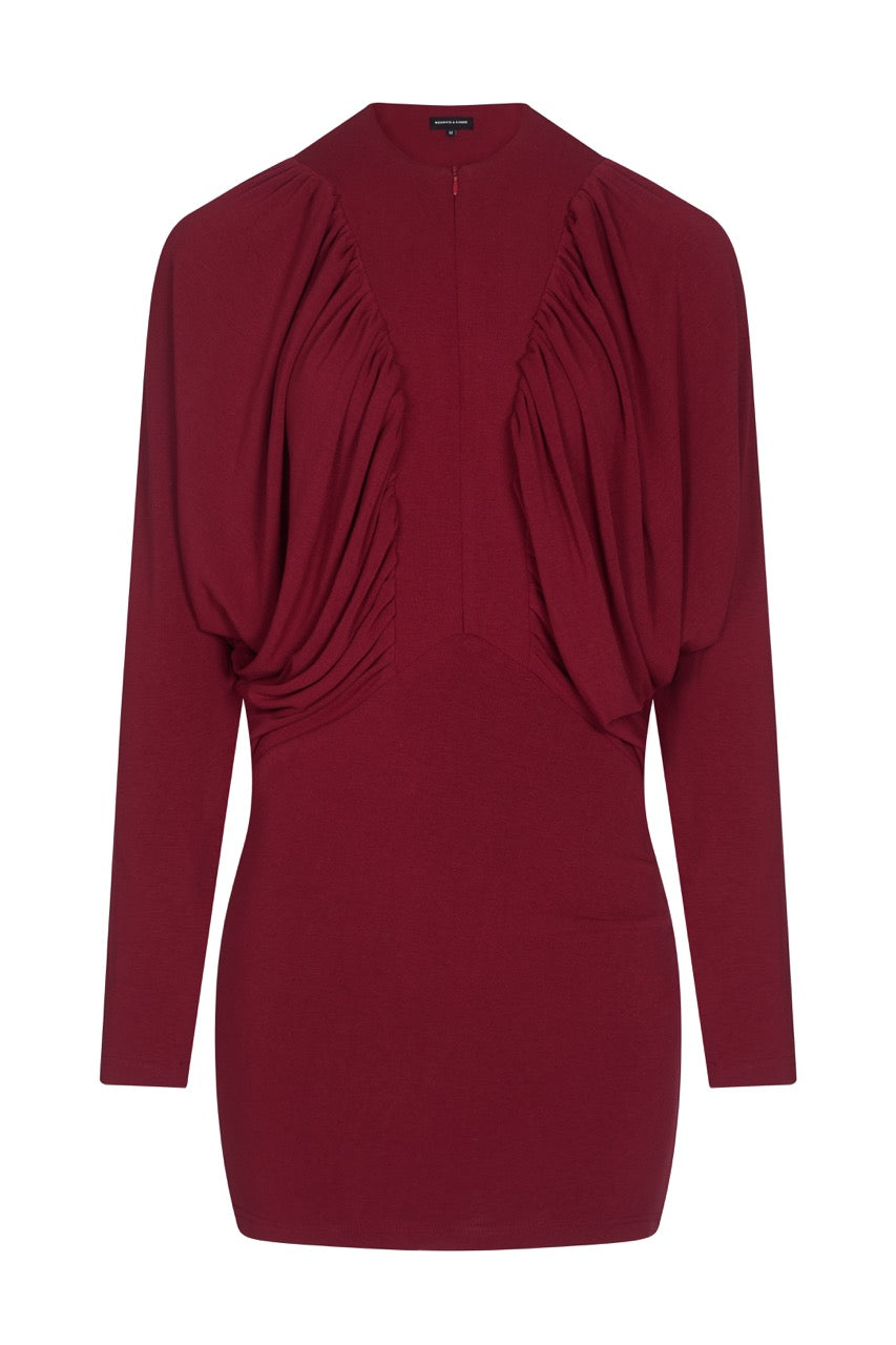 MARISA Burgundy Draped Sleeve Zip Front Dress