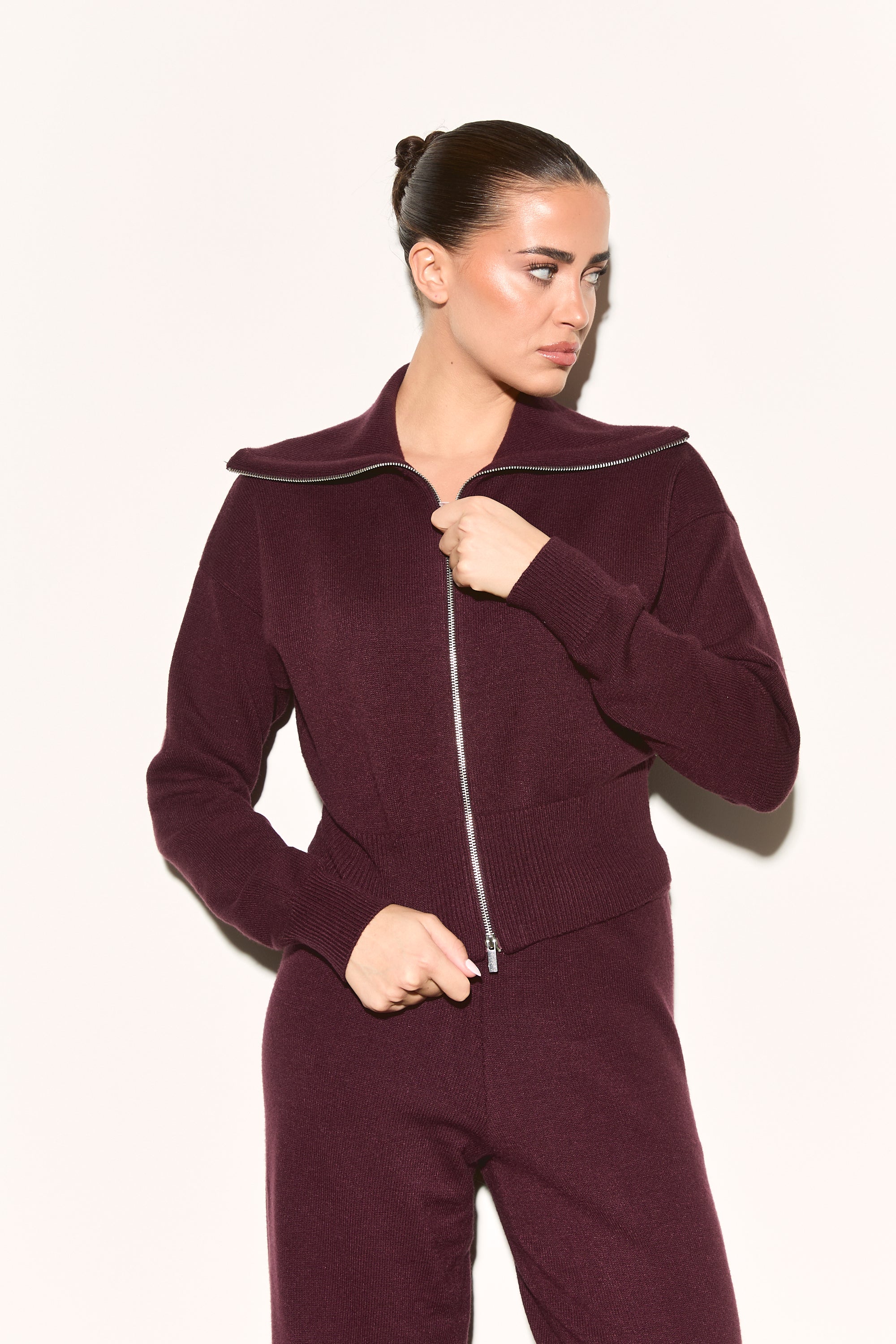 Stay snug without sacrificing style in the RIA Burgundy Zip Up Knit Jumper. This cosy yet cool piece wraps you in warmth while the zip-up design adds a fun, laid-back edge. Perfect for layering or wearing solo!