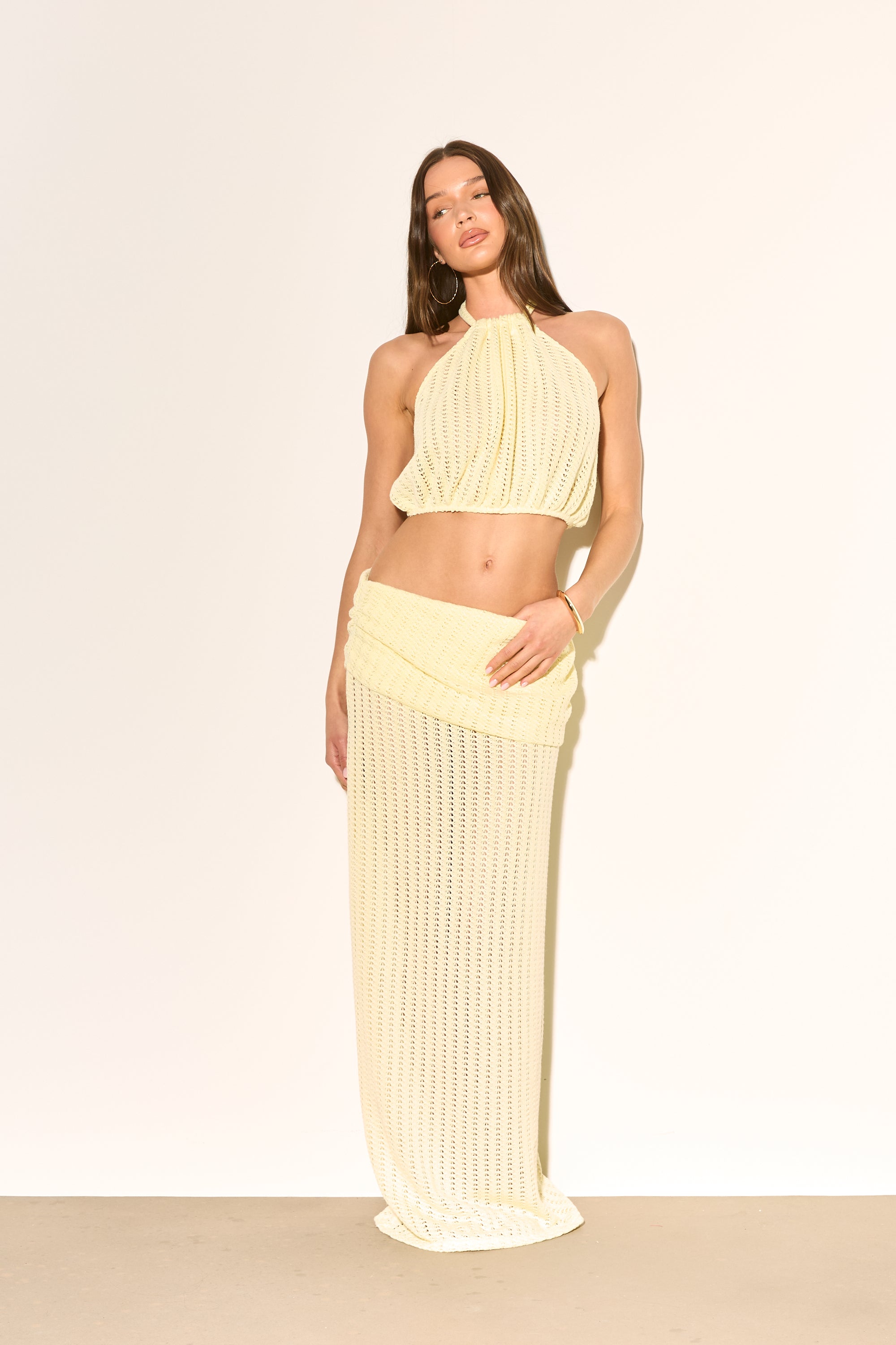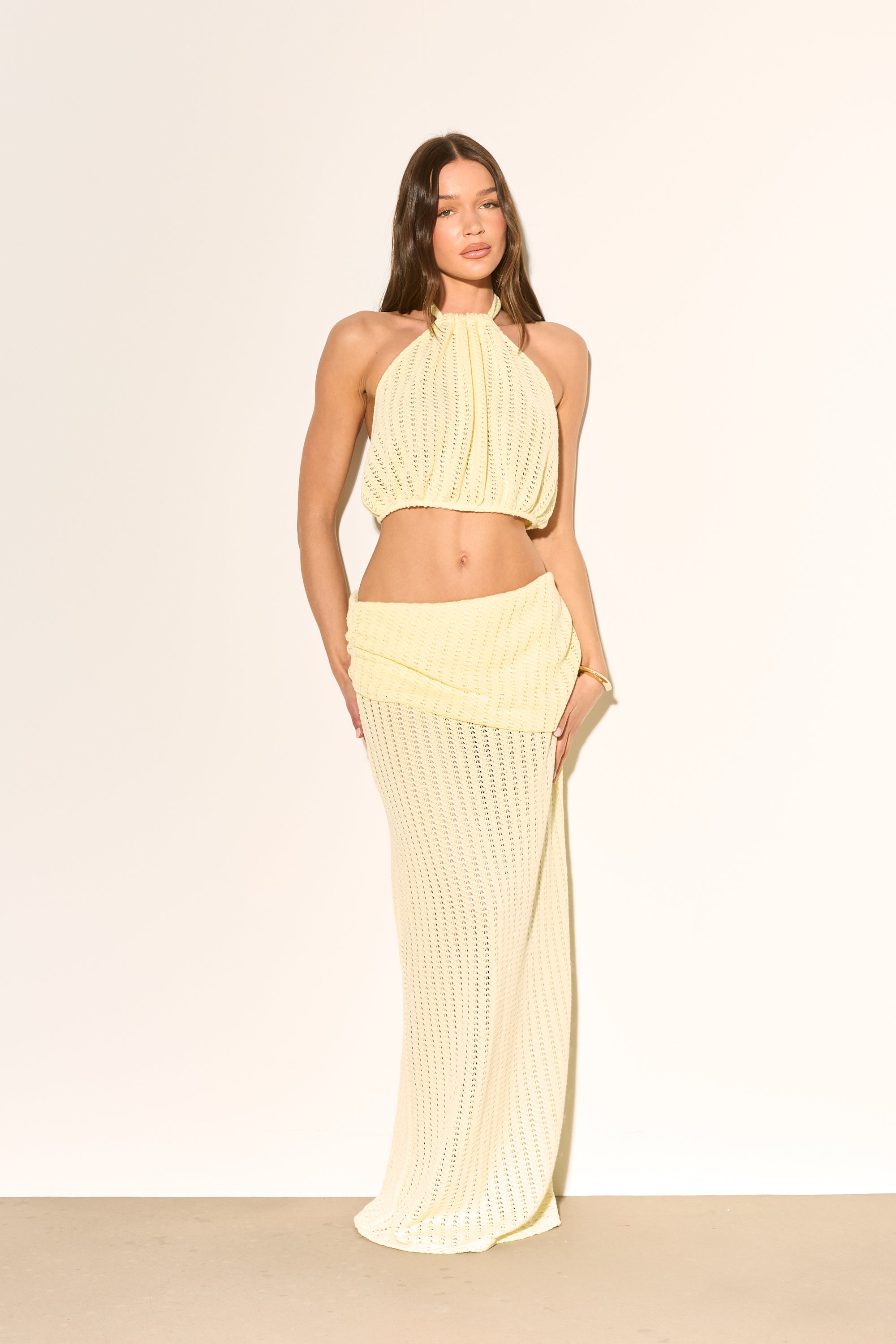 SEREN Lemon Knit Halter Top & Skirt Co Ord