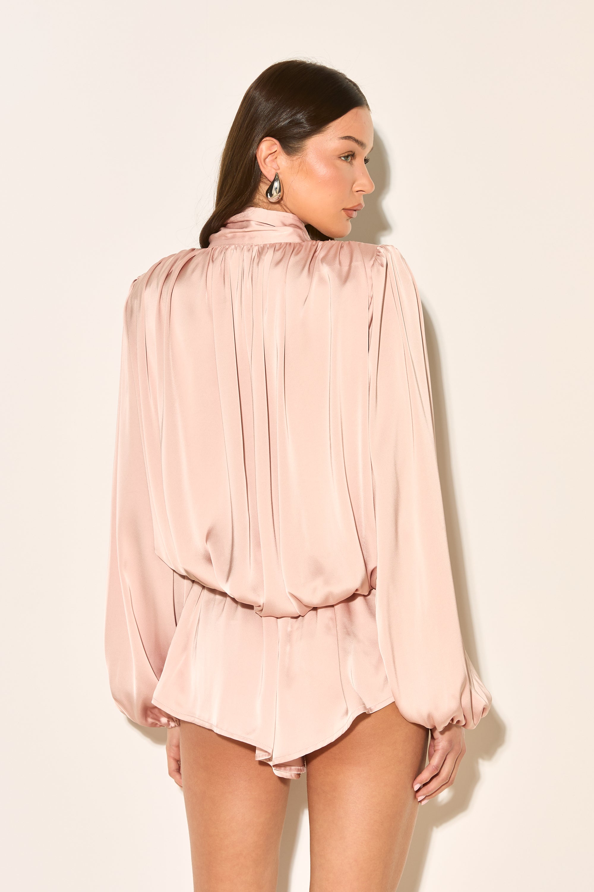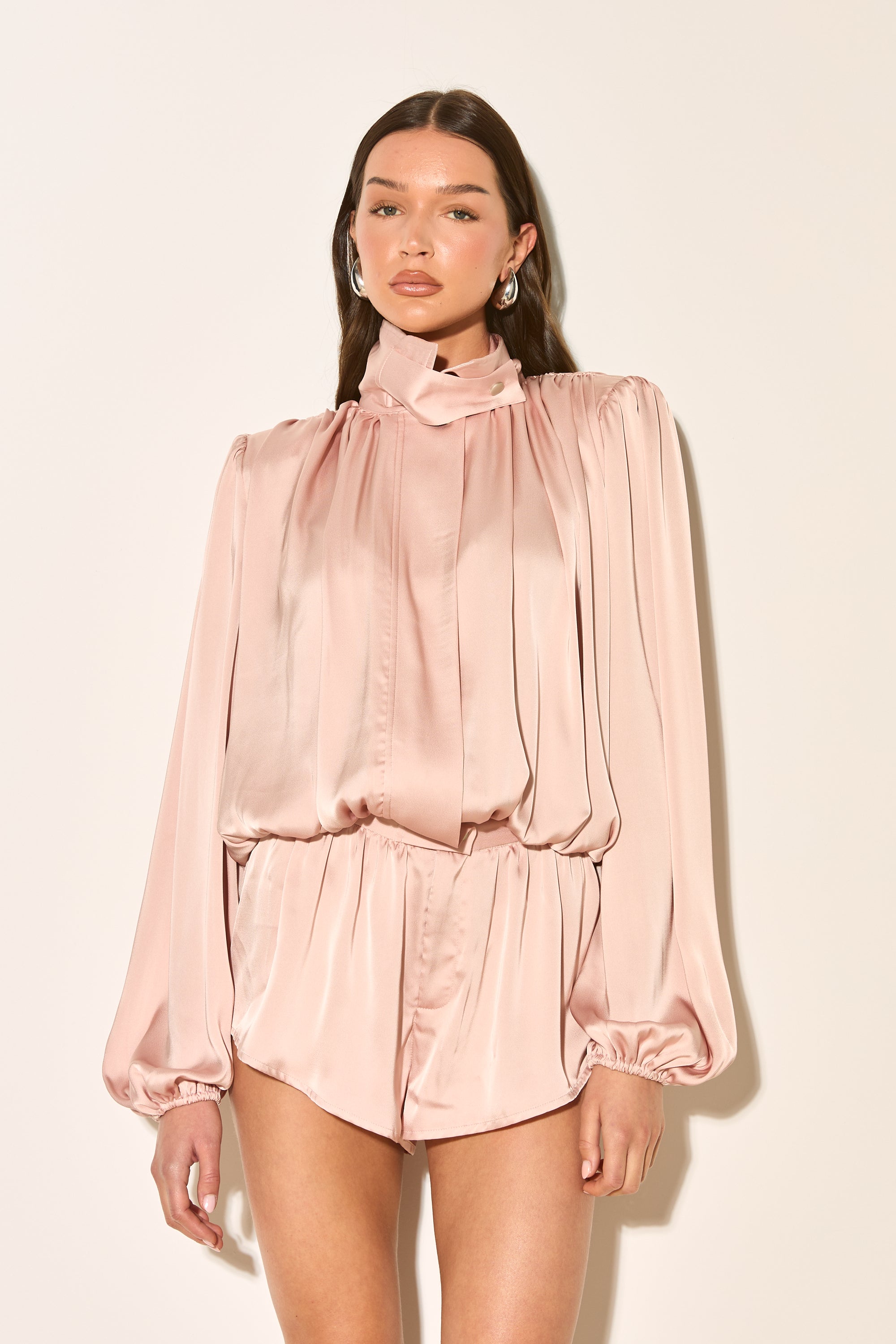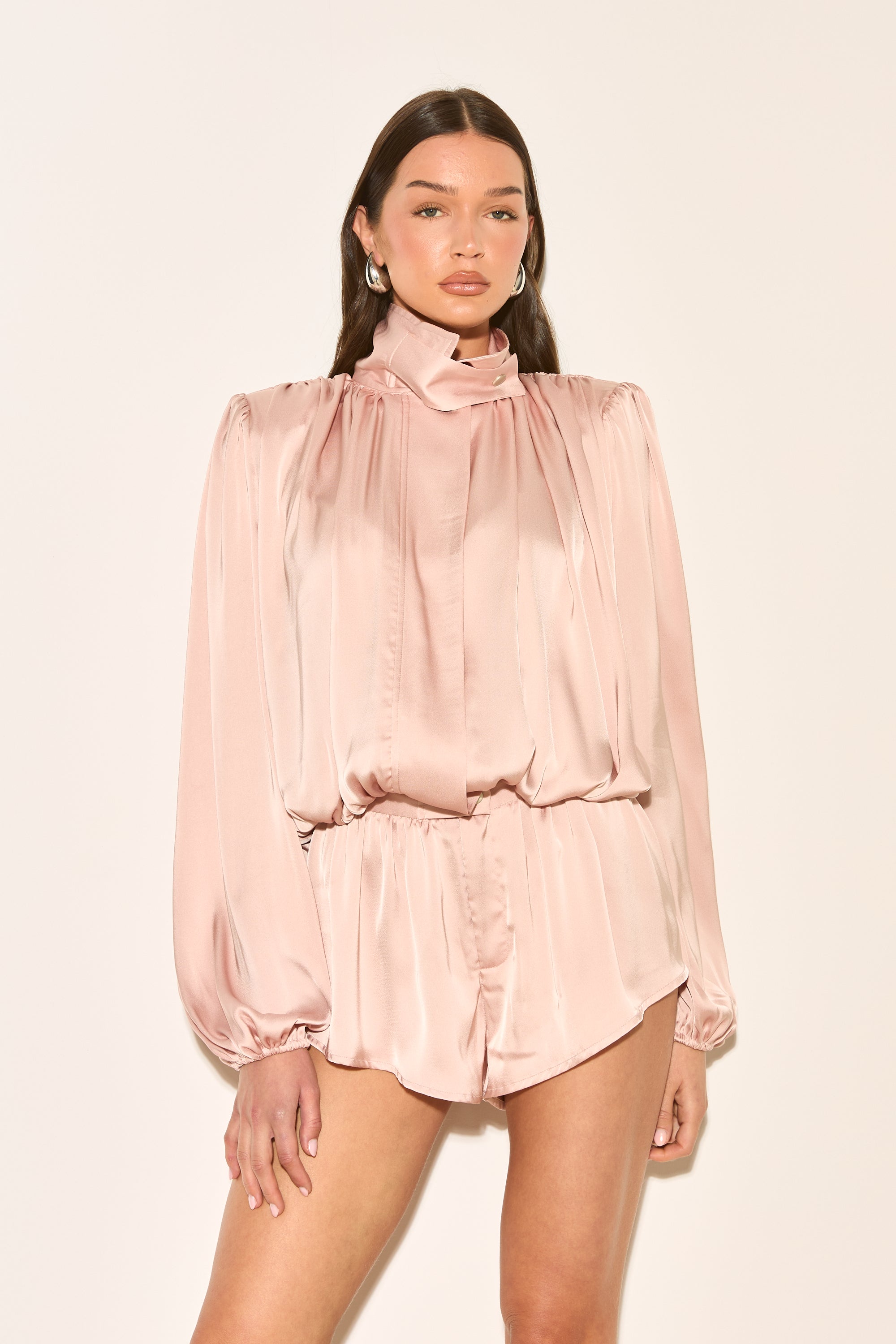 TELIA Blush Pink Satin Funnel Neck Playsuit