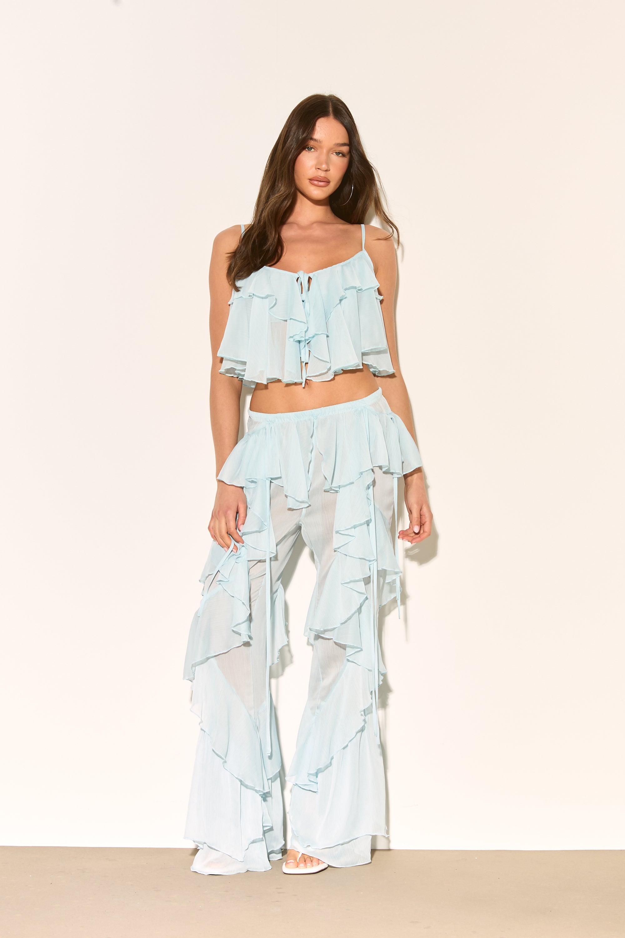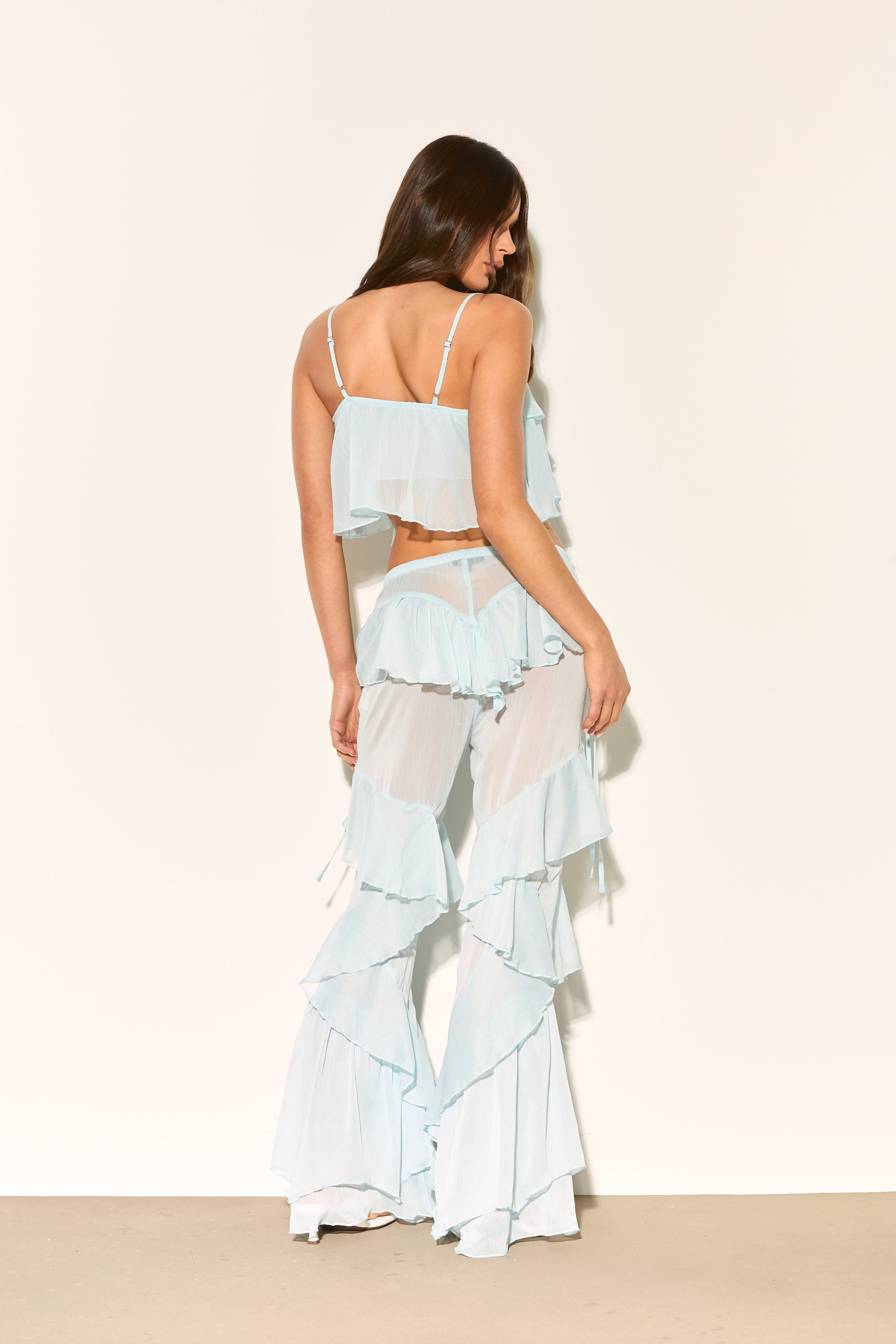 CELIA Blue Ruffle Flared Trousers
