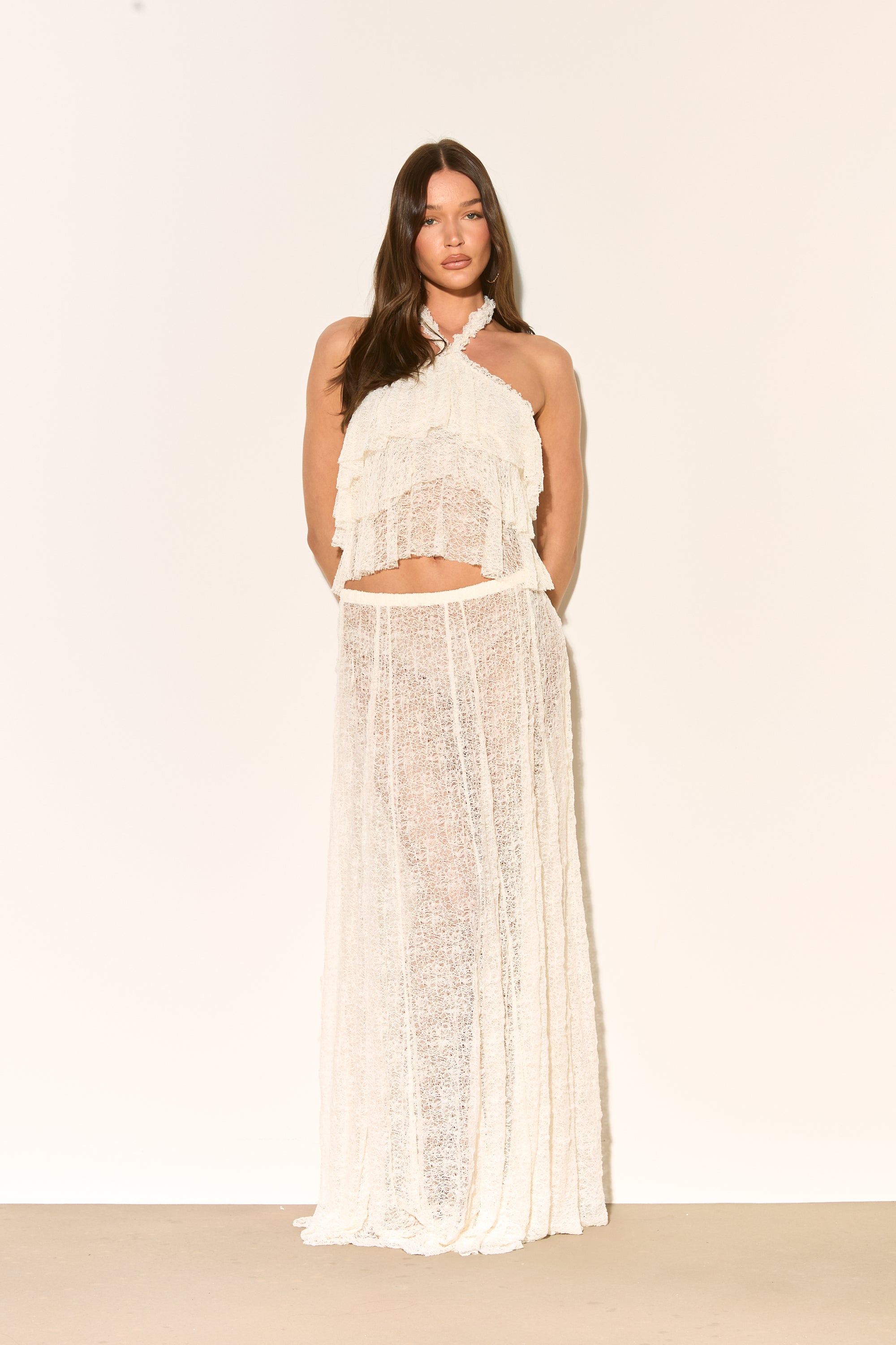 LIRA Cream Lace Halter Top