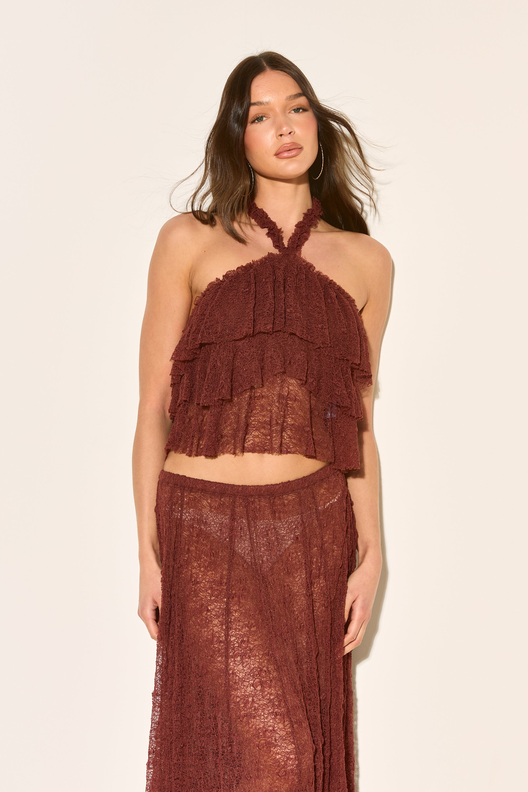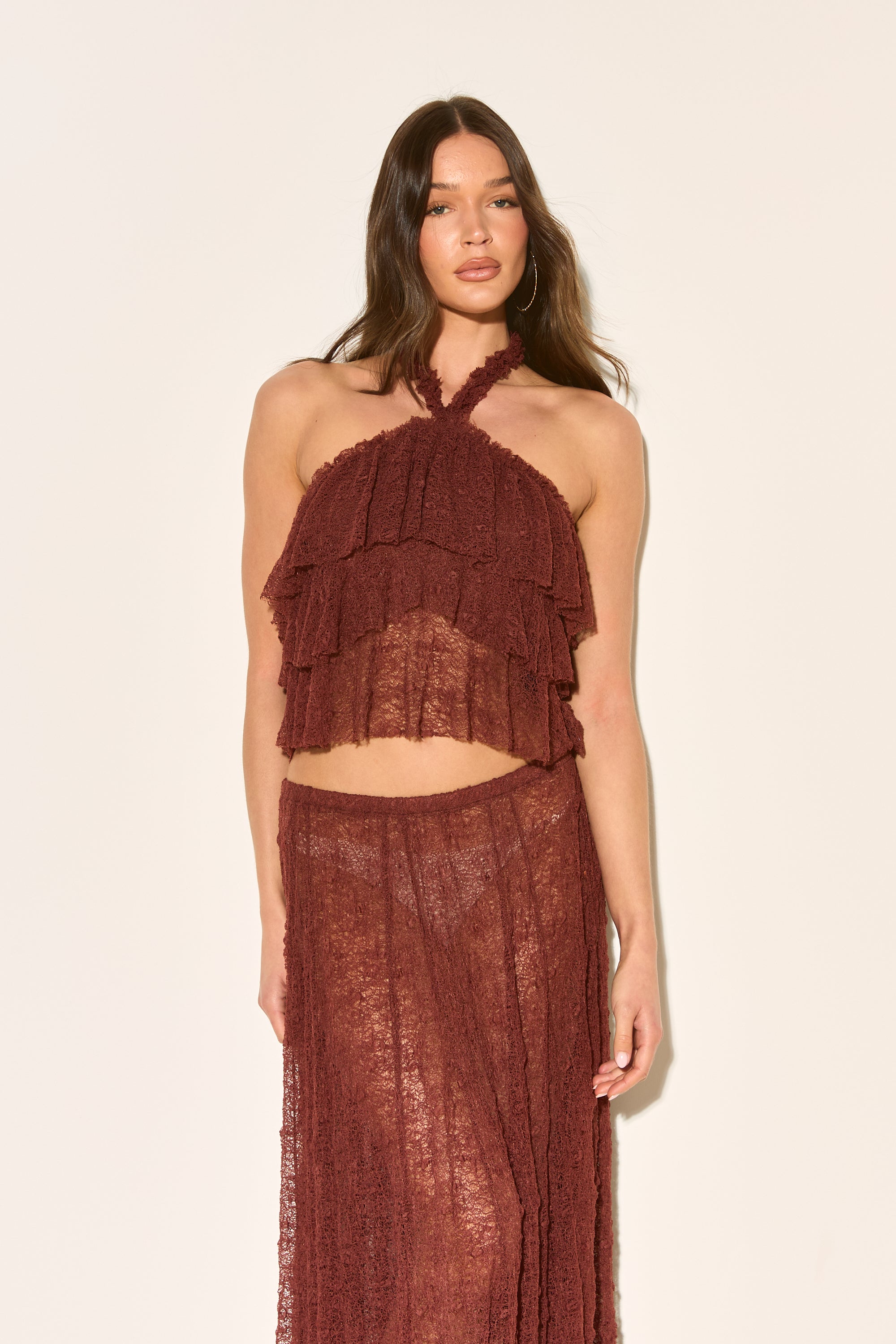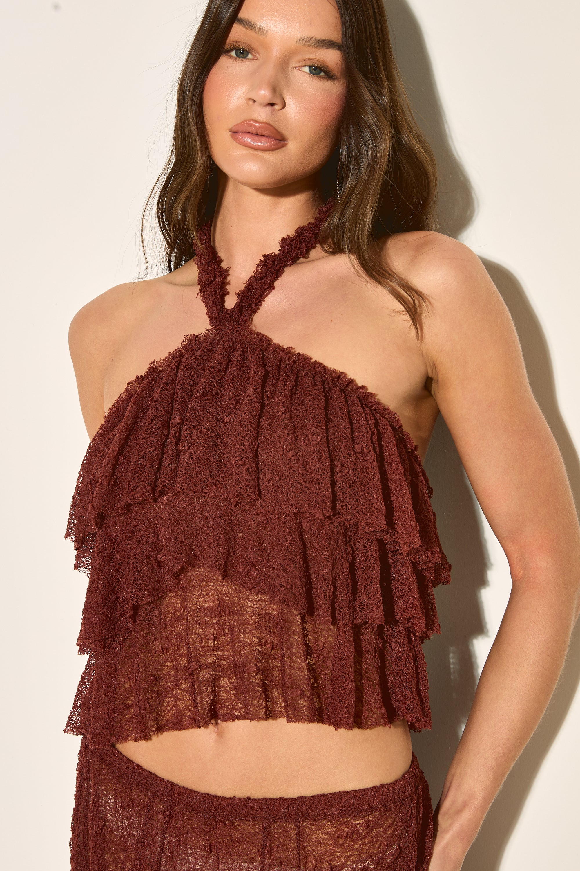 LIRA Brown Lace Halter Top