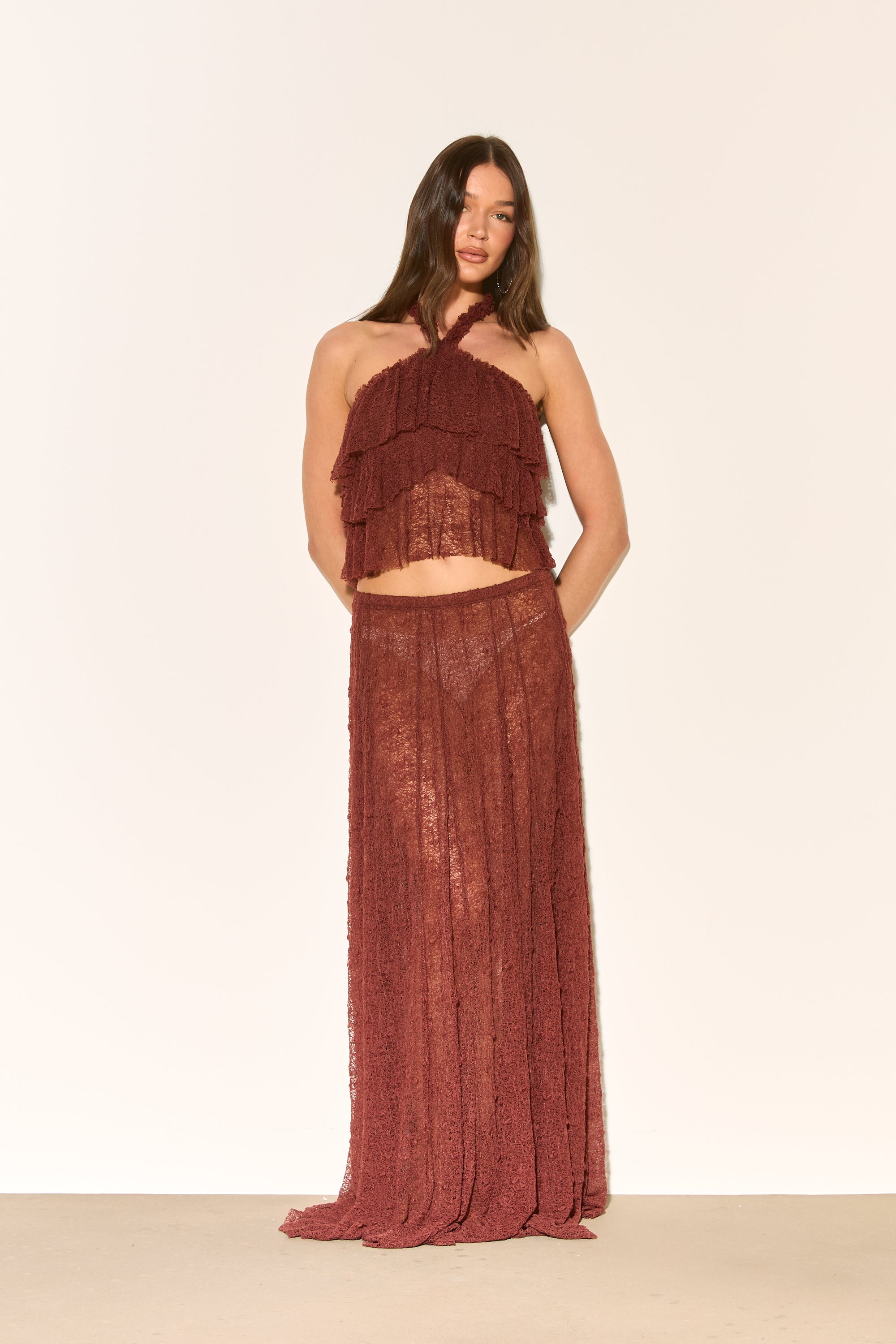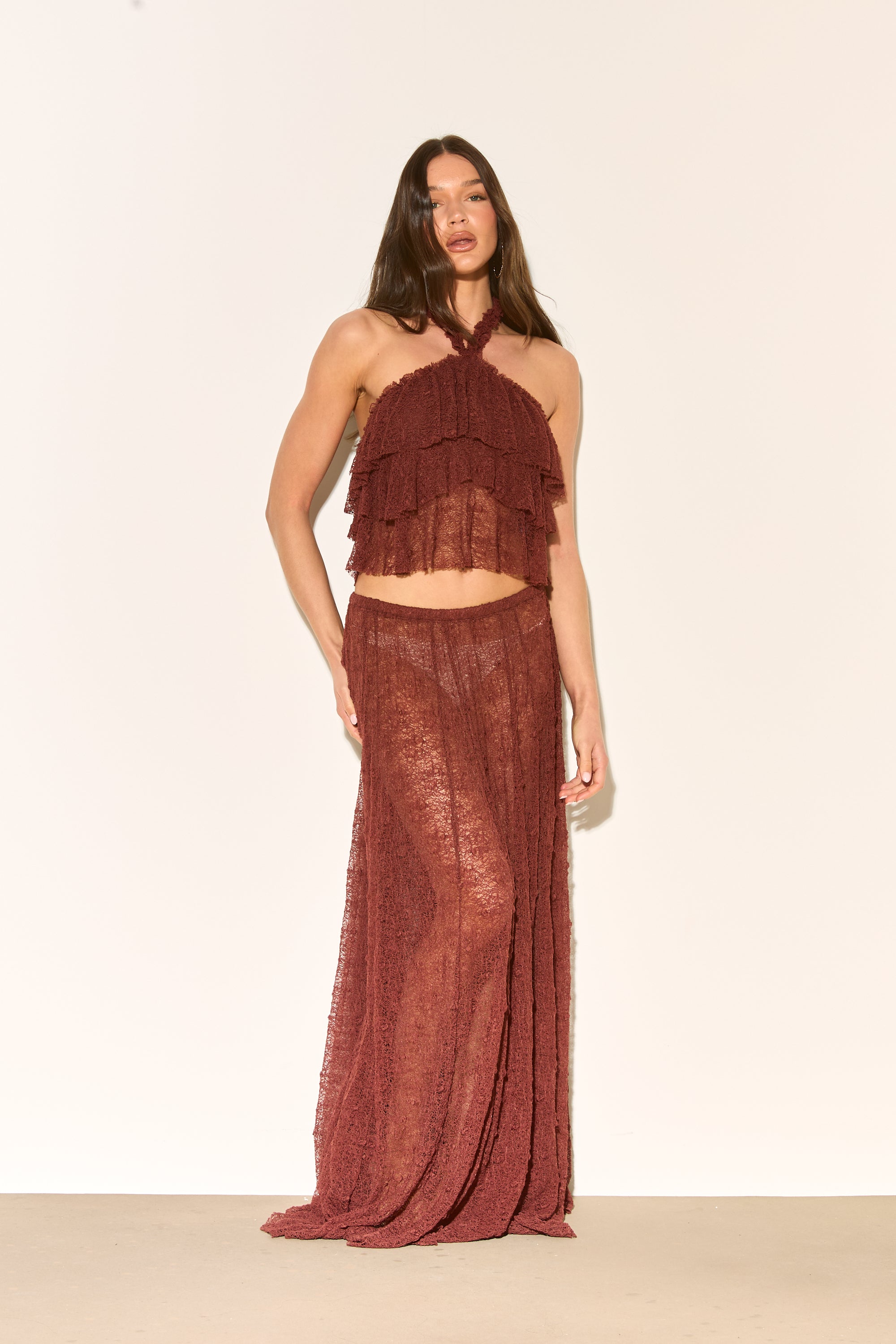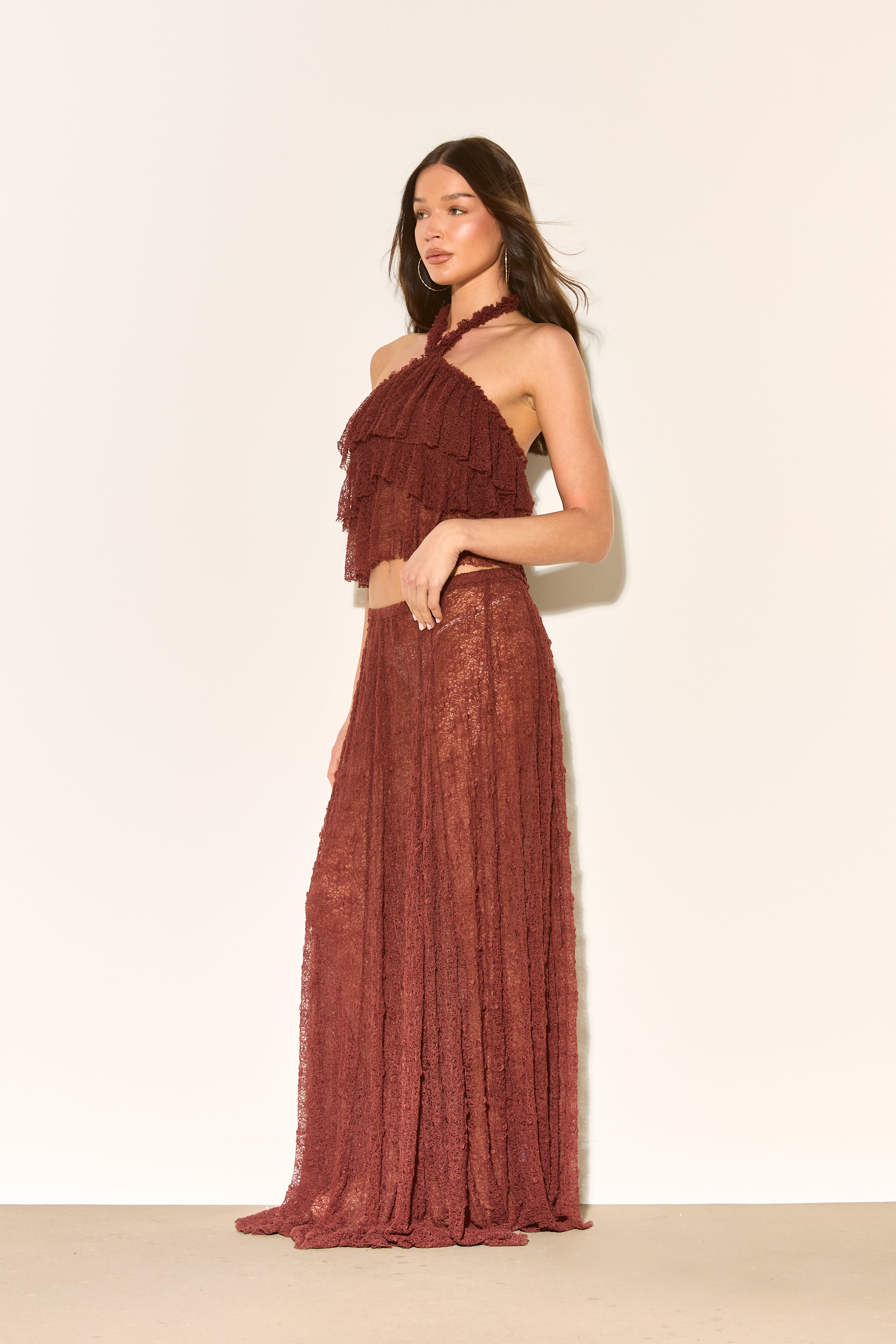LIRA Brown Lace Halter Top
