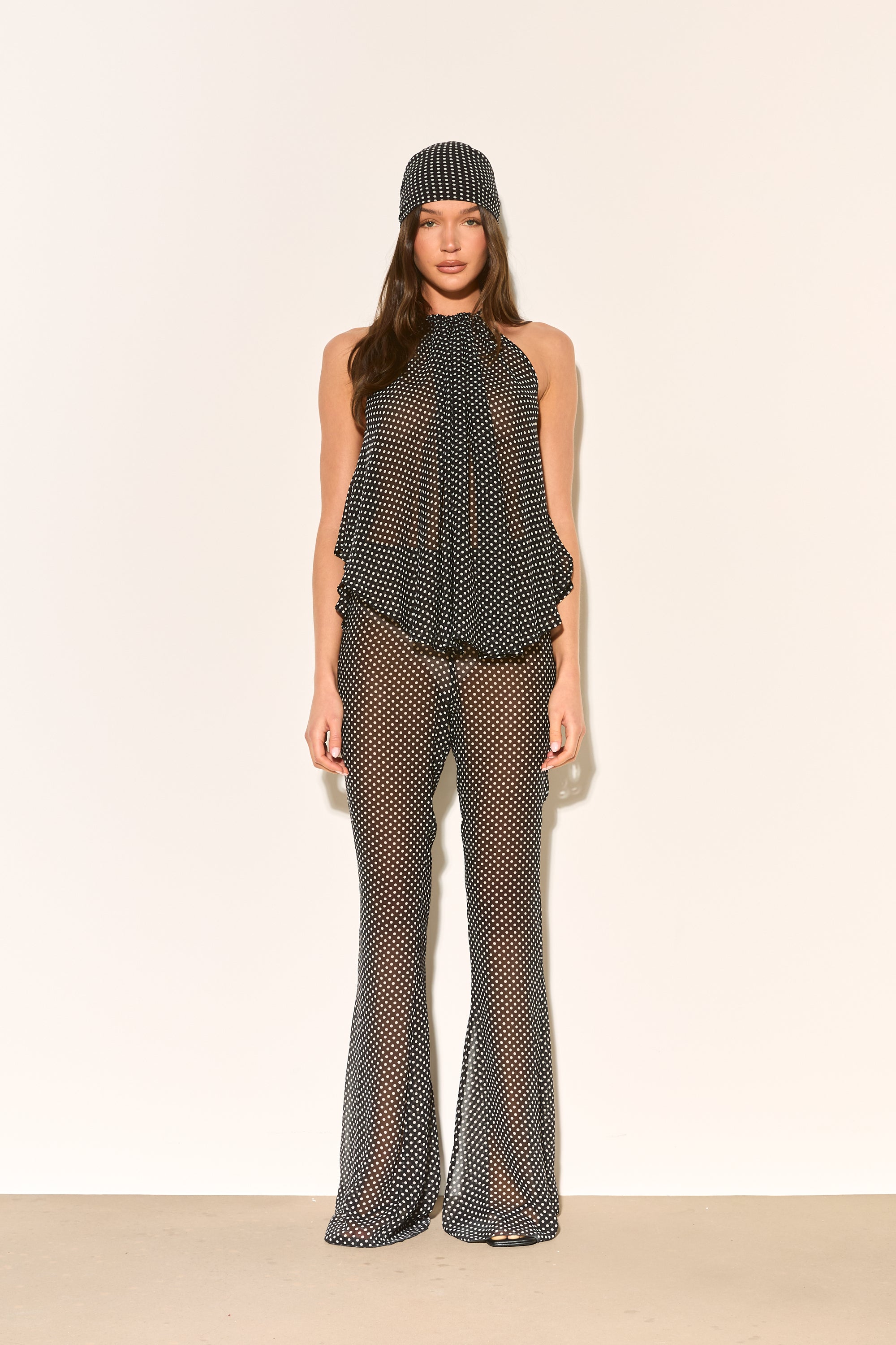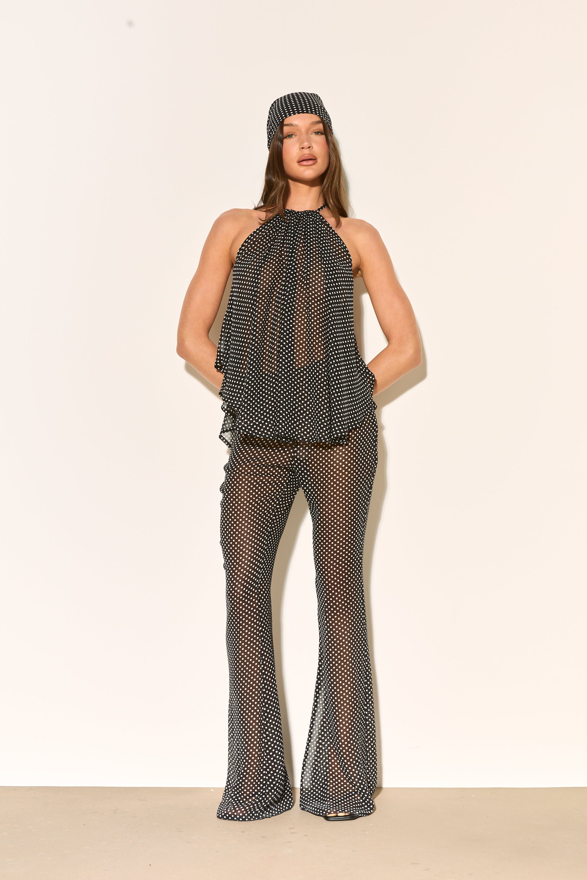 AMIRA Black Polkadot Halter Chiffon Top
