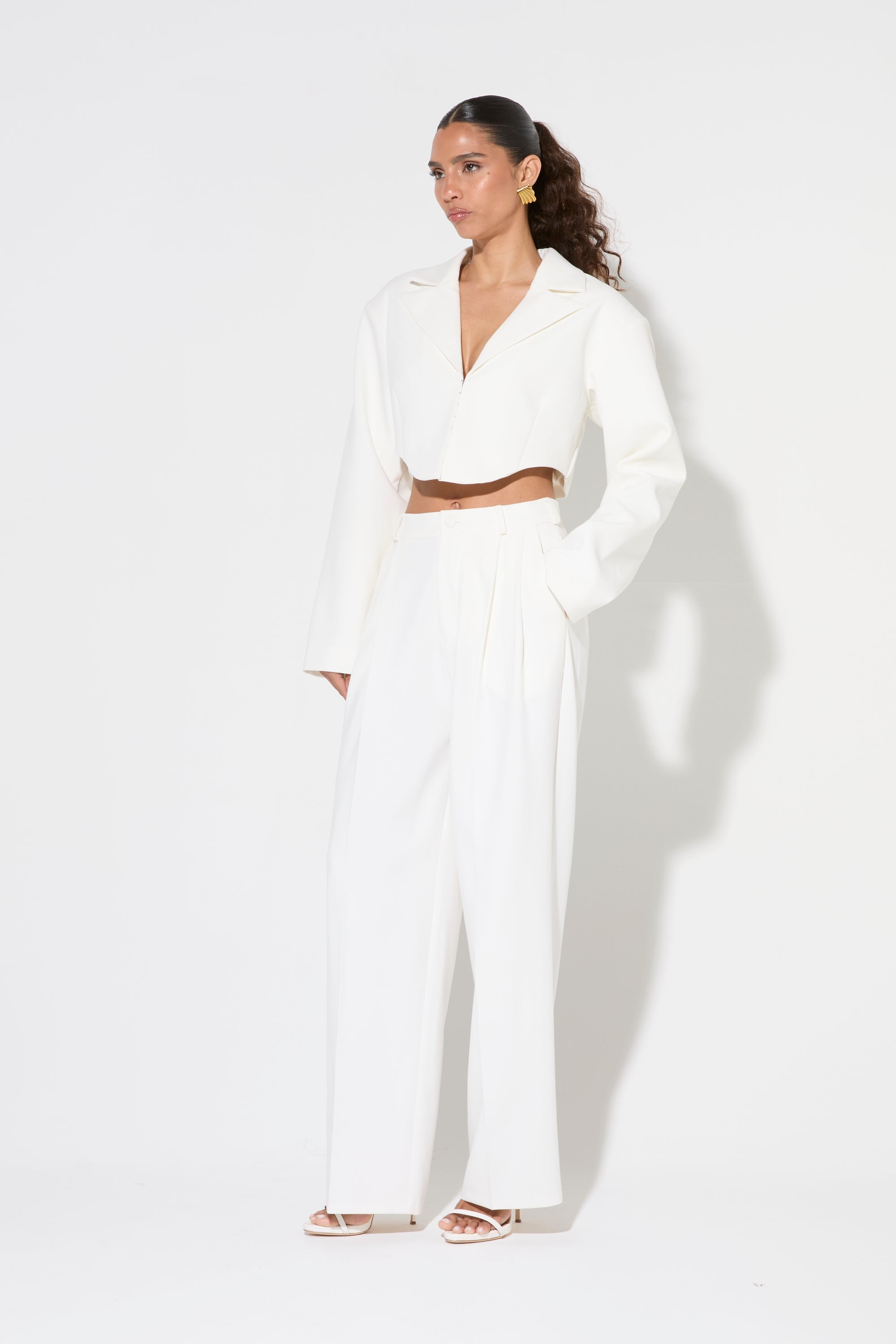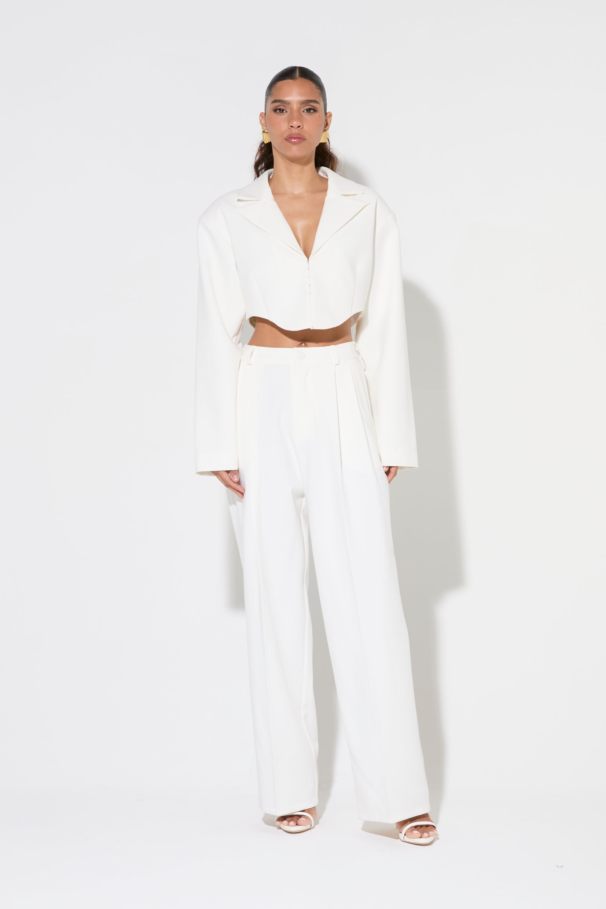 Our MARCI White Tailored Trousers are the epitome of elegance and style. Designed with a tailored fit, these trousers are a staple piece for any wardrobe, adding a touch of sophistication to any outfit. Perfect for any occasion, these chic trousers will make you feel confident and put together.