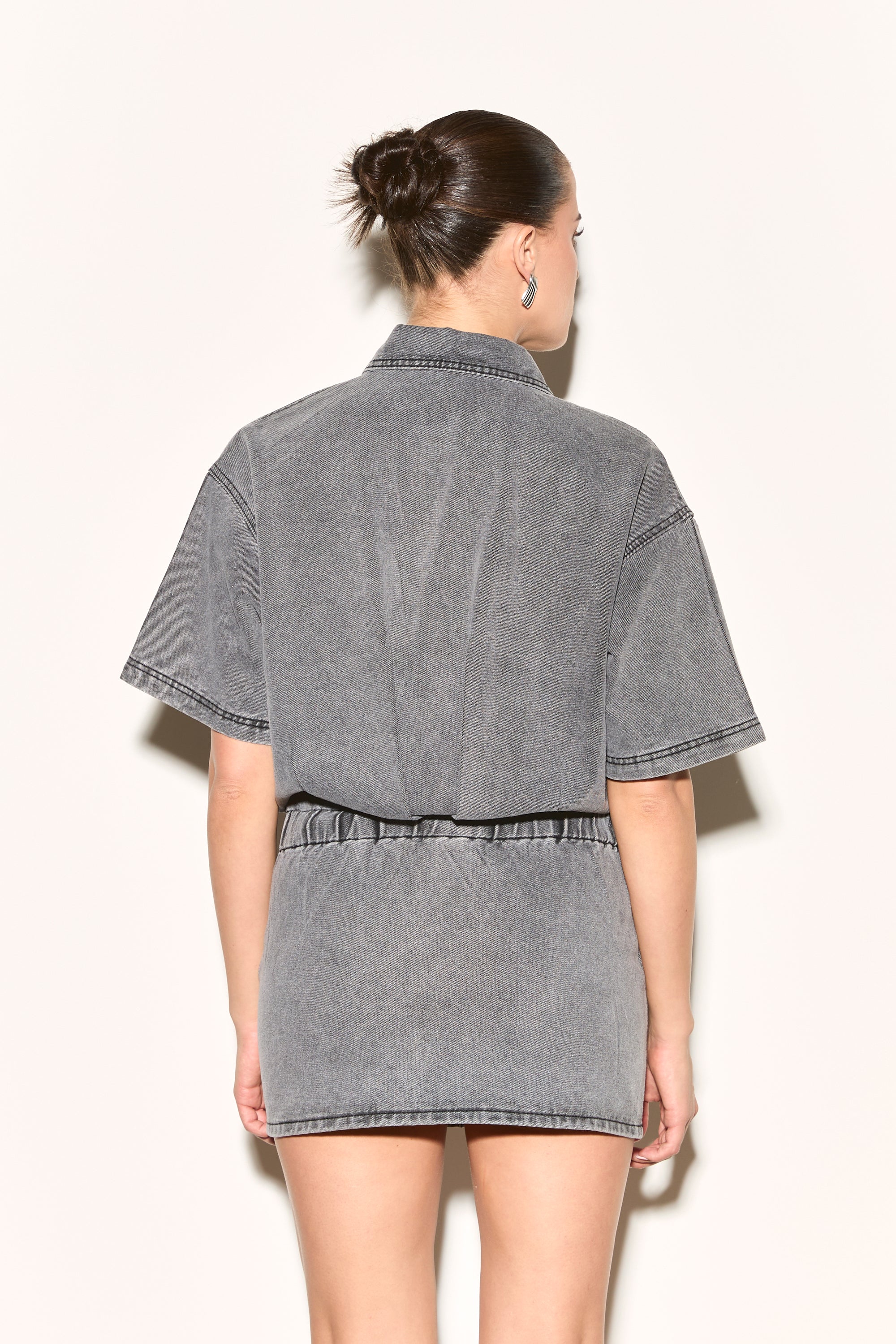 Introducing the FARRAH Grey Denim Shirt Dress, your must-have spring/summer staple. Made with soft denim, this dress is a versatile addition to your wardrobe. Perfect for any occasion, its timeless style provides both comfort and style. Don't miss out on this essential piece.