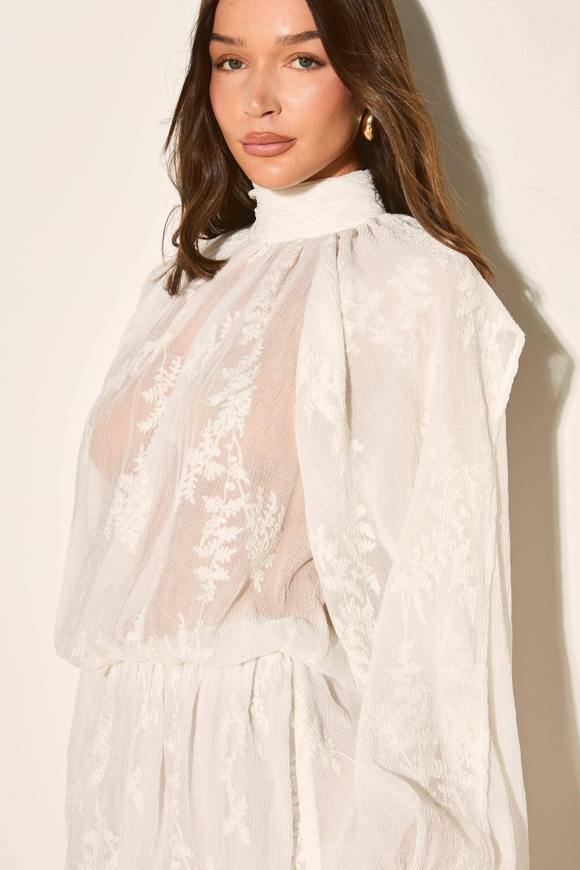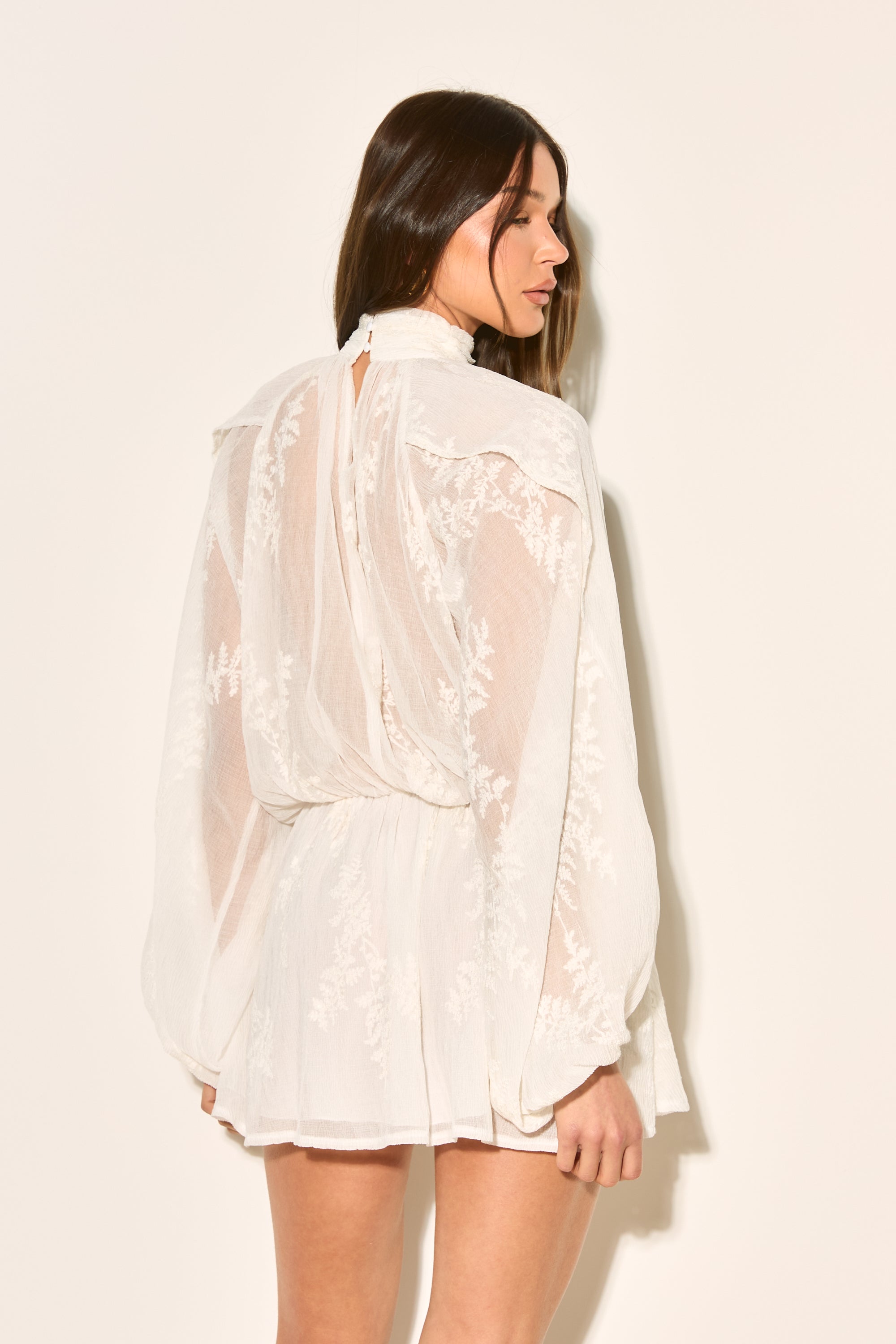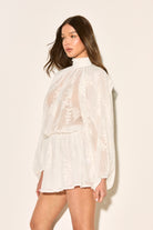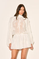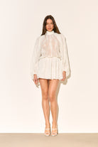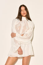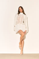 Our JOSELYN dress is crafted from delicate lace with a floaty silhouette! This white beauty features a charming high neck and playful ruffles that dance with every movement.