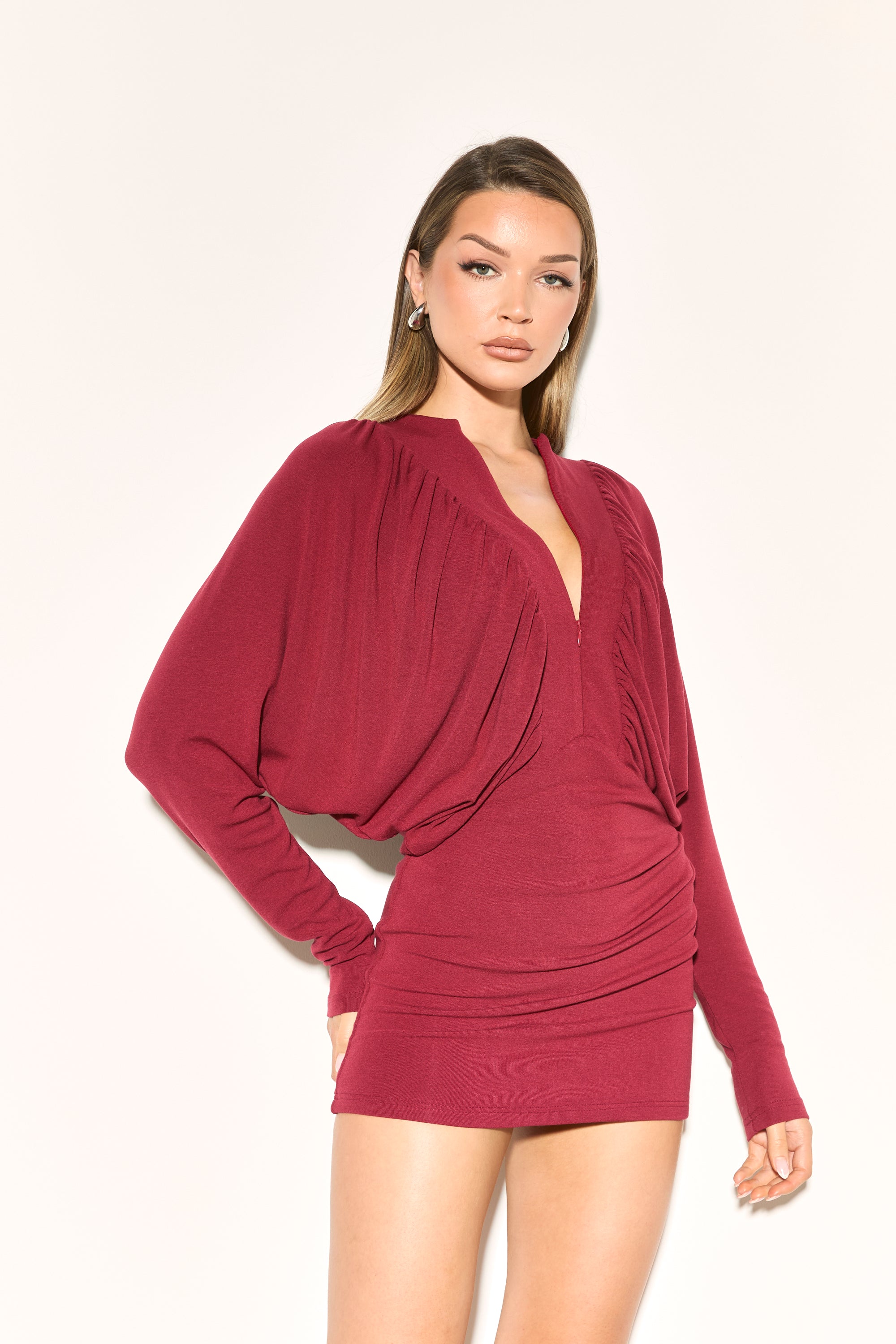 MATHILDÈ Burgundy Deep Plunge Mini Dress