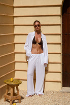 Introducing MAYA White Beach Trousers - the perfect addition to any beach holiday. Made with a light fabric, these beach pants provide ultimate comfort. The adjustable drawstring ensures a perfect fit for all body types.