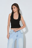 Experience luxury comfort in our TIA Black Knit Tank Top. Made with a premium knit fabric, this tank top features a flattering scooped neckline.