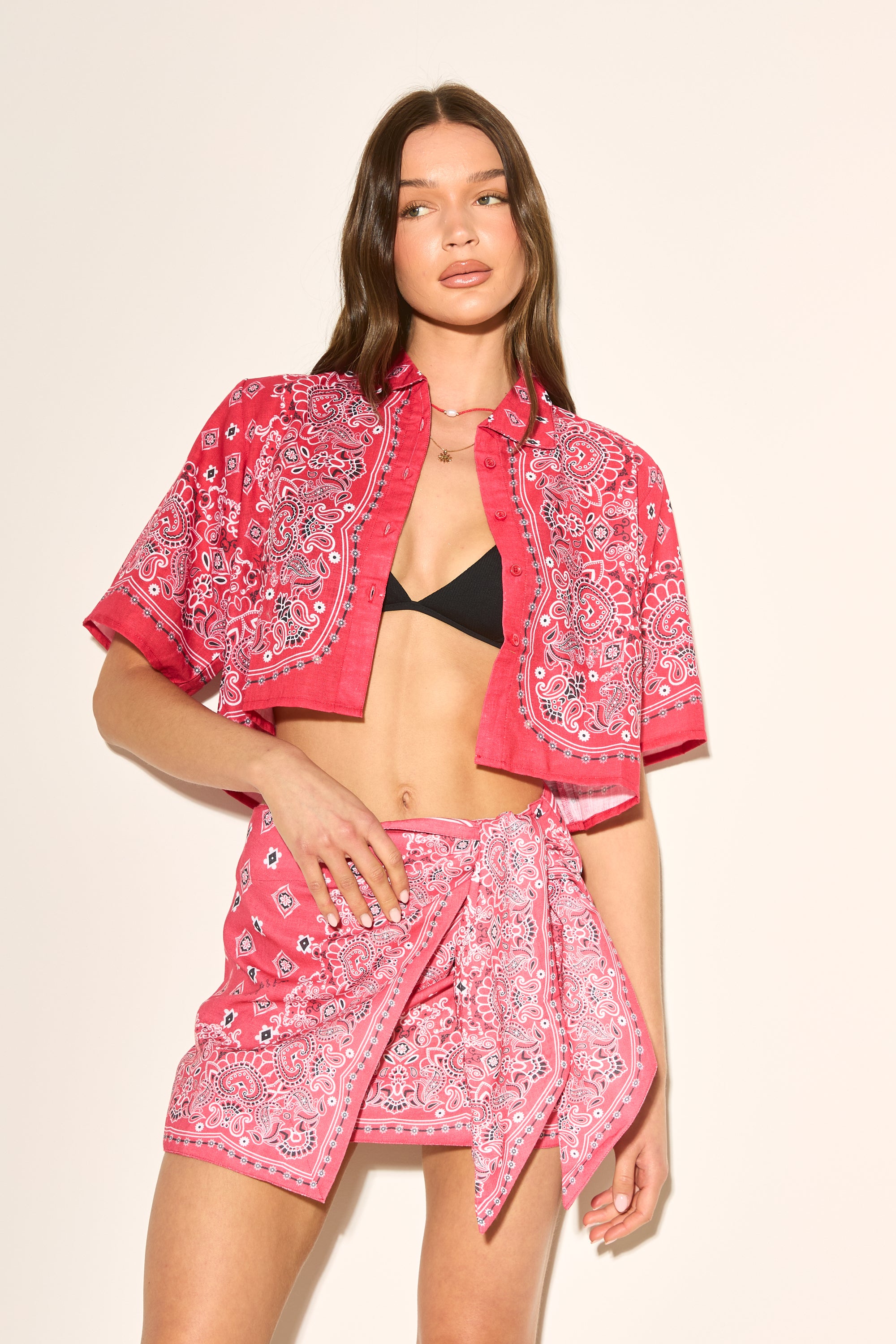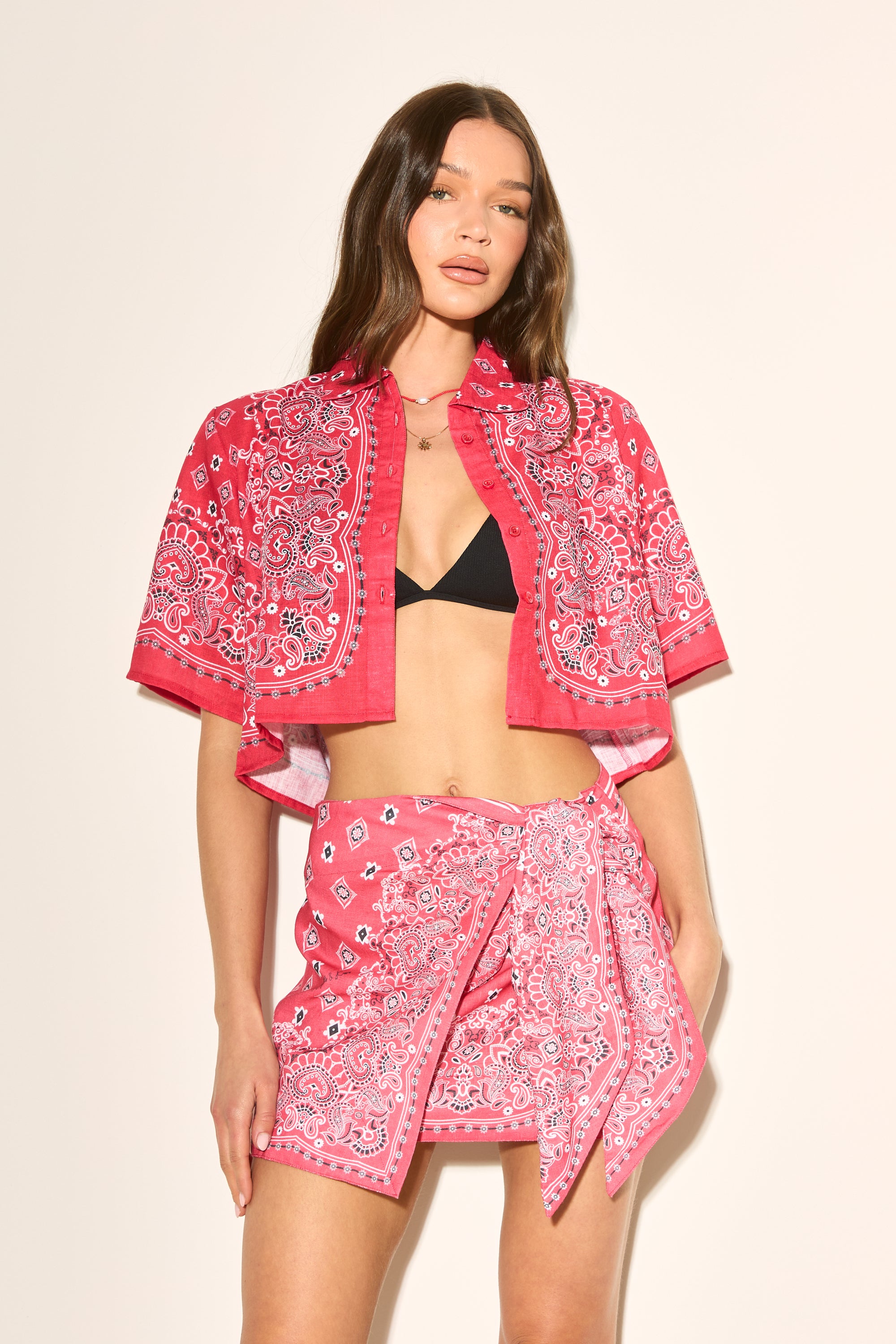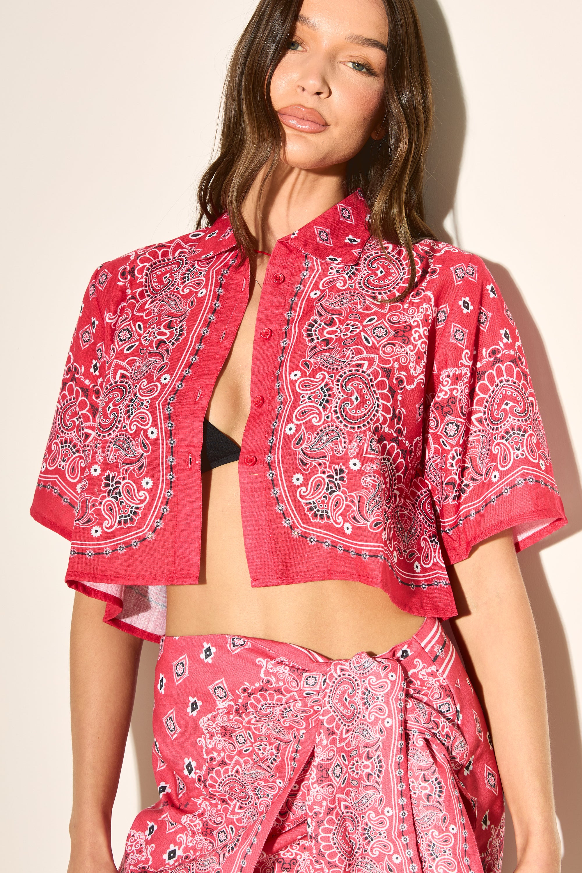 BANDANA PRINT Red Cropped Shirt