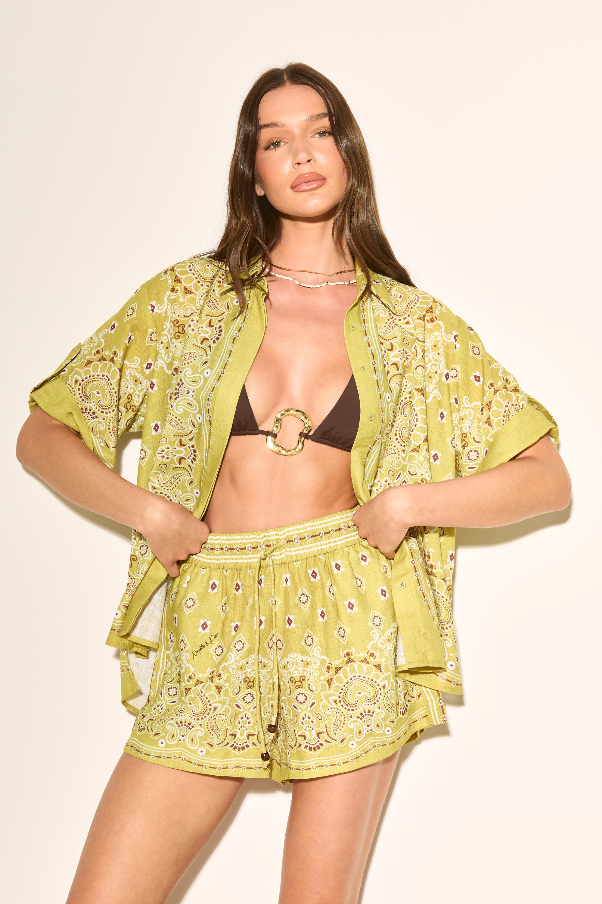 PALM OLIVE Printed Shorts