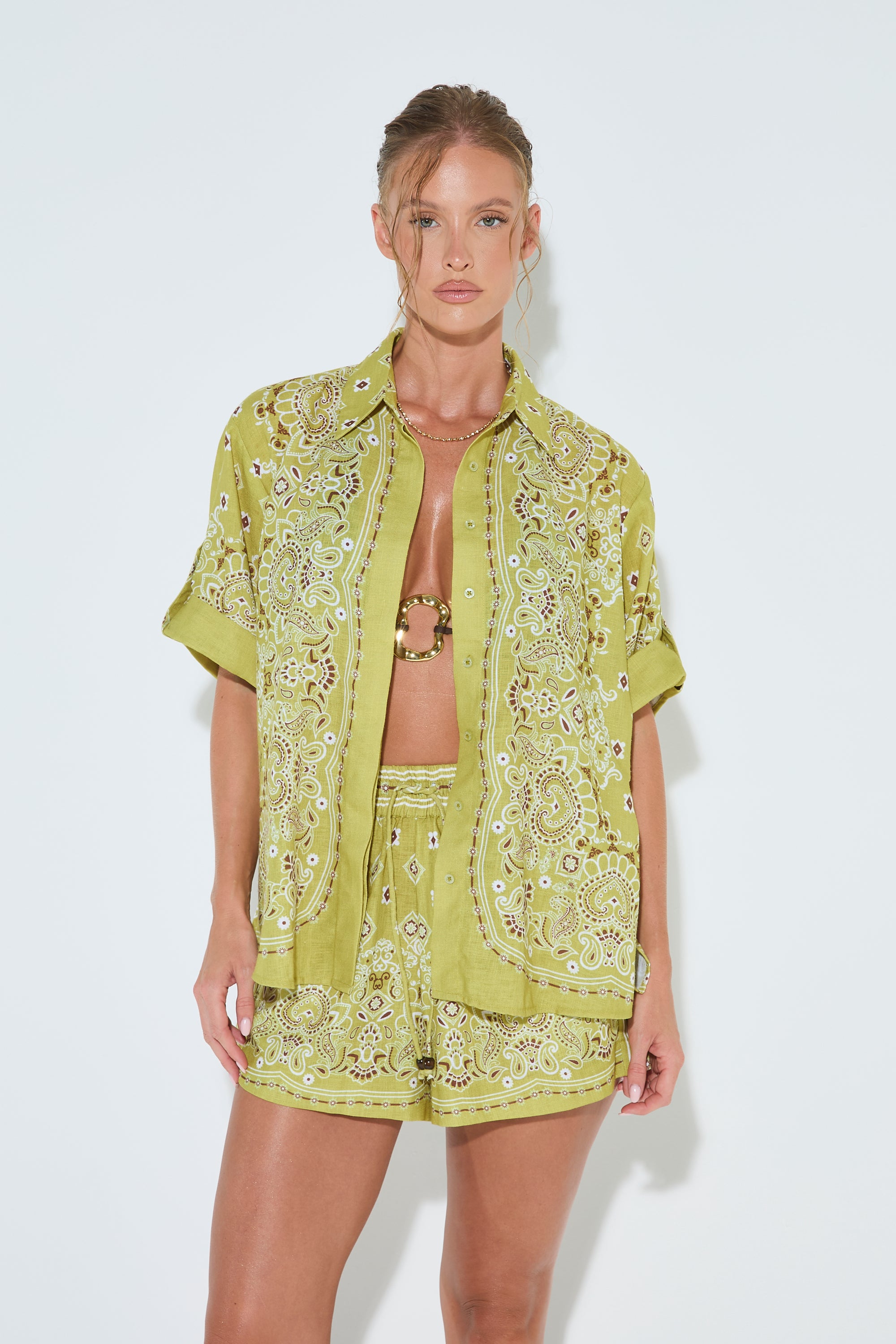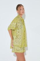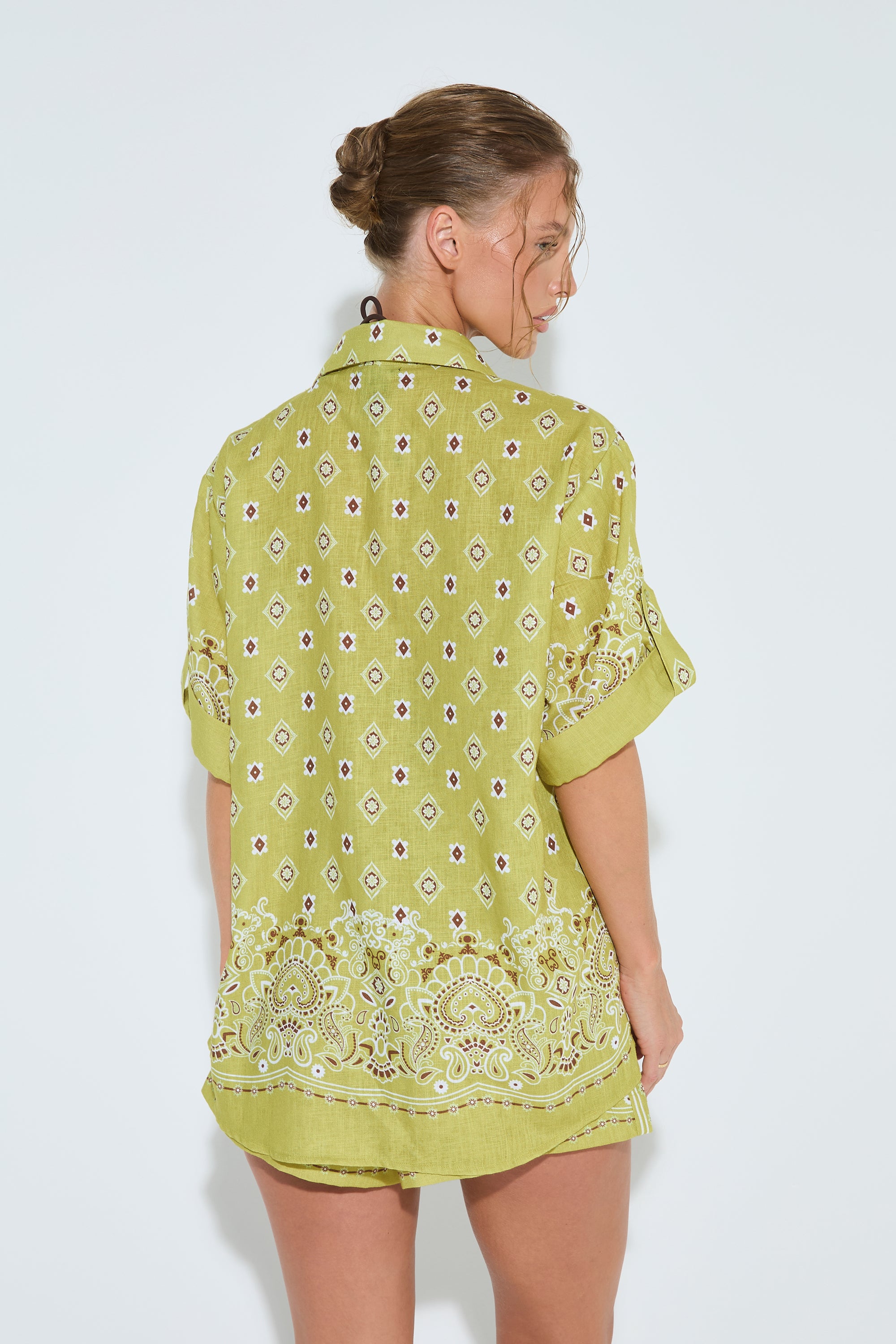 Keep it cool and chic this summer with our sundazed szn collection printed shirt. It showcases vibrant prints that capture the essence of the season. Designed for the effortlessly stylish, it’s the perfect piece for beach days, brunches, or any summer outing.