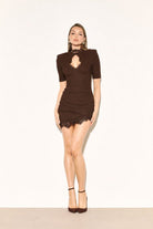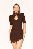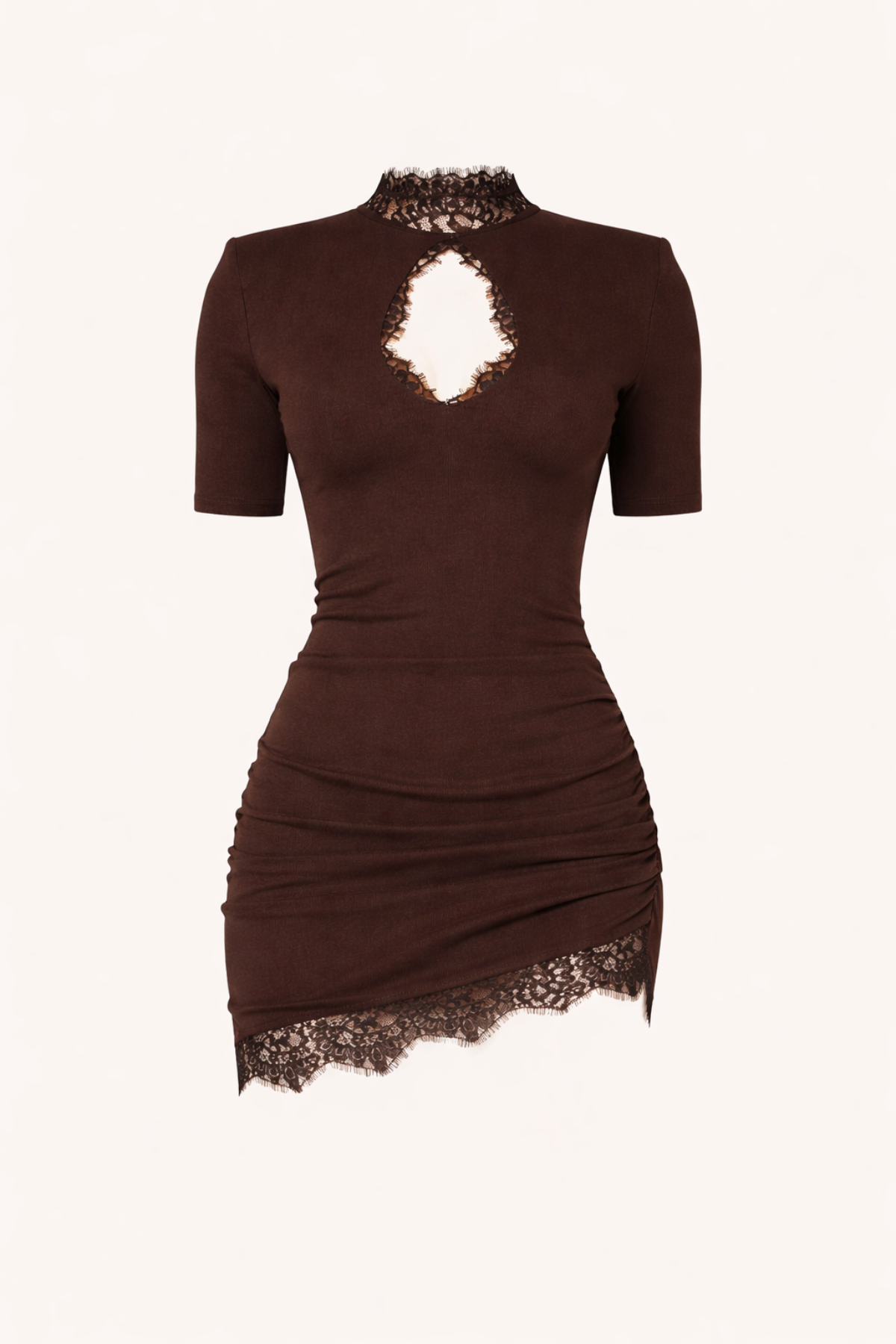 AMAYA Chocolate Lace Cut Out Mini Dress