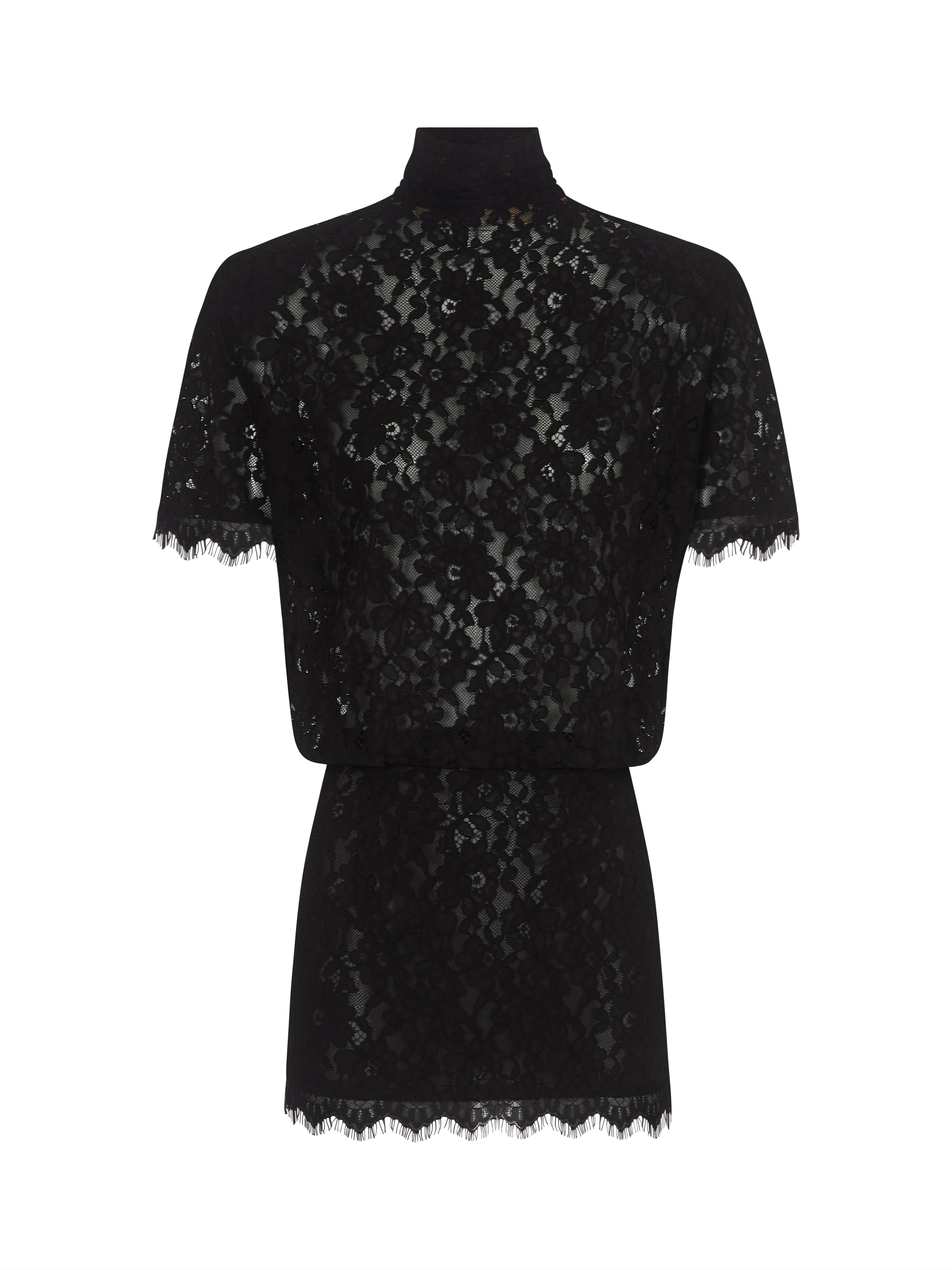 Turn heads in the ORLA Black High Neck Lace Mini Dress, where delicate lace meets a flattering high neckline. Ideal for nights out or special occasions, it’s designed to make you feel confident and effortlessly stylish.