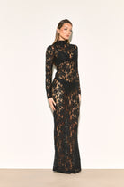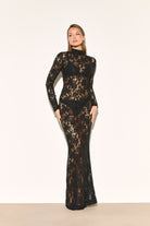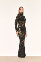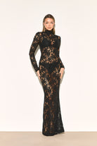 EVALINA Black Lace Maxi Dress