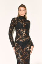 Slip into the EVALINA Black Lace Maxi Dress. This maxi dress features delicate black lace that moves with you, perfect for any party occasion.