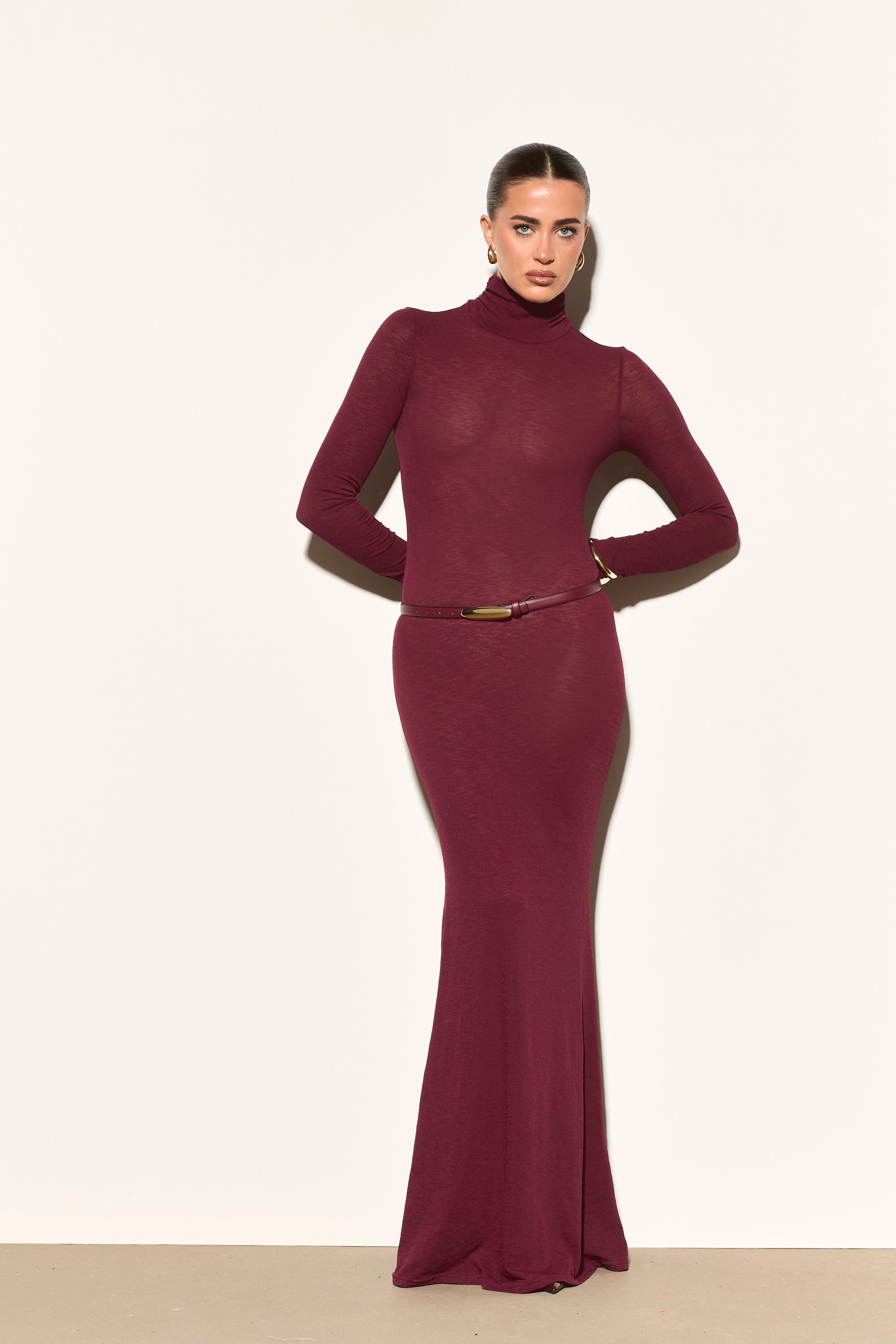 Slip into the GISELE Burgundy Onion Skin Maxi Dress for a sleek silhouette that hugs your curves just right. This close-fit maxi dress effortlessly combines elegance with a hint of charm, making it perfect for day or night.