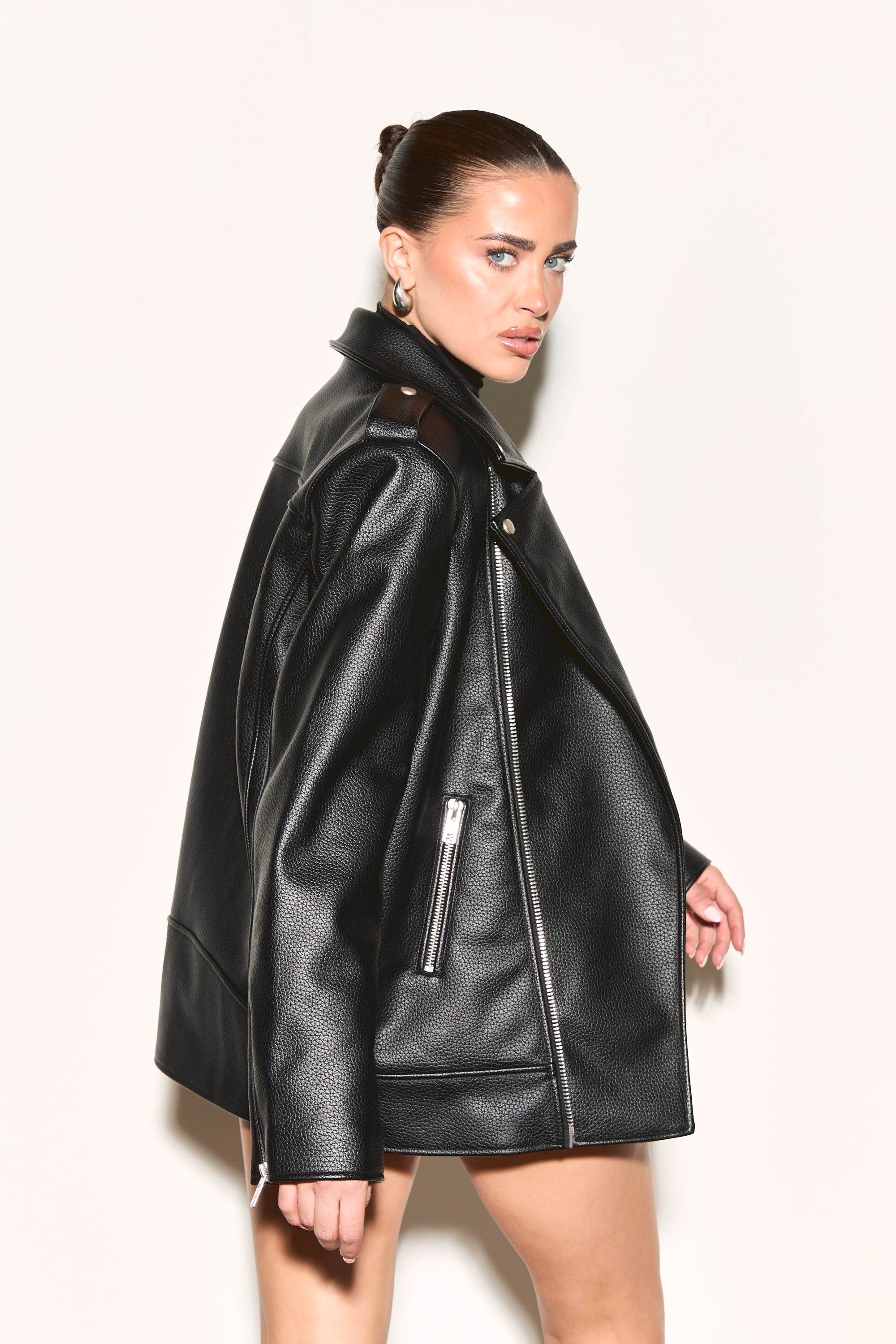 IRIS Black Oversized Vegan Leather Jacket