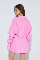 Effortlessly stylish and flattering, the LEONE Pink Stripe Shirt Dress is perfect for any occasion. Boasting a beautiful stripe pattern and dropped sleeves, this dress offers a timeless and chic look.