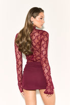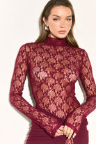 Step out in style with the SENORA Burgundy Long Sleeve Lace Top. Its intricate lace design adds a touch of elegance while the rich burgundy hue keeps you fashion-forward and chic.