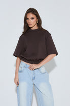 The FAE Brown Boxy T-Shirt offers versatile styling options with its full or cropped wear length. Its boxy and cool fit exudes effortless style and comfort.