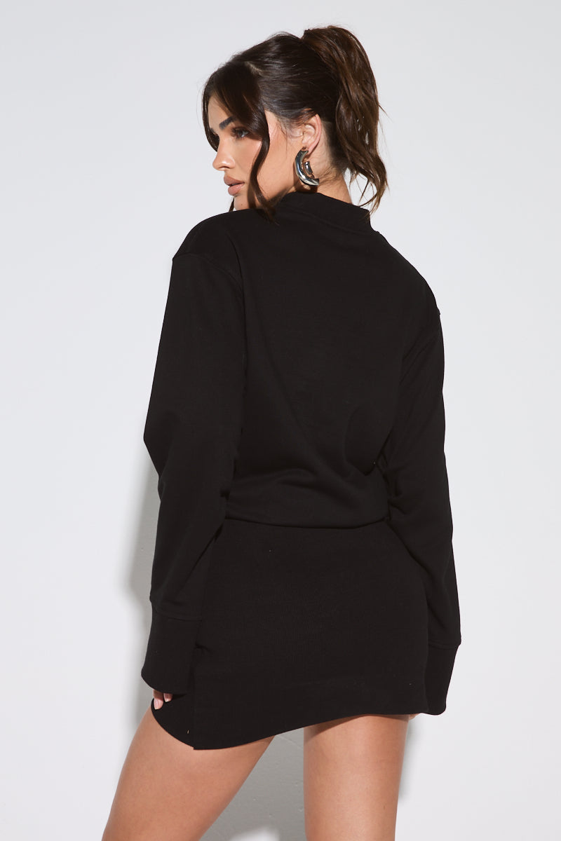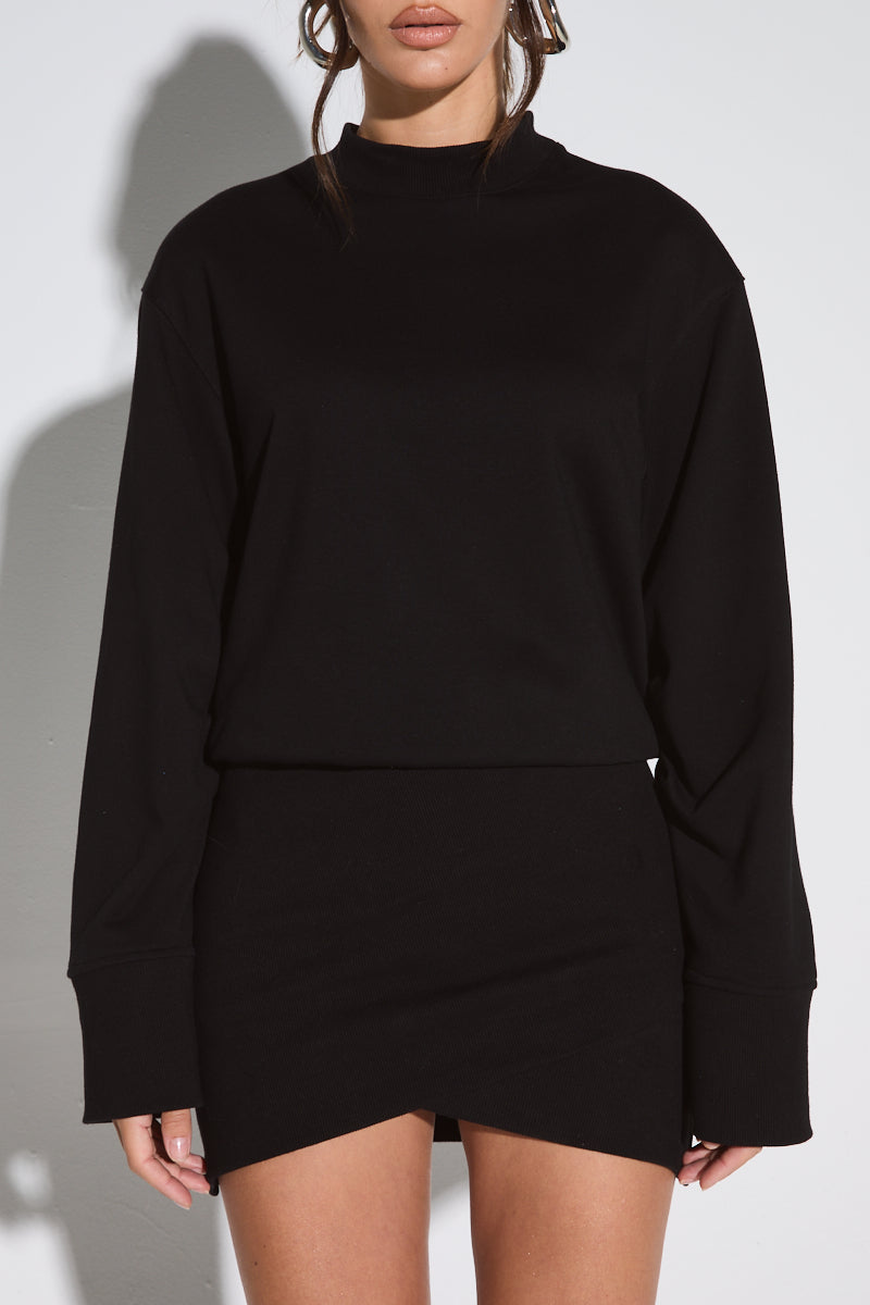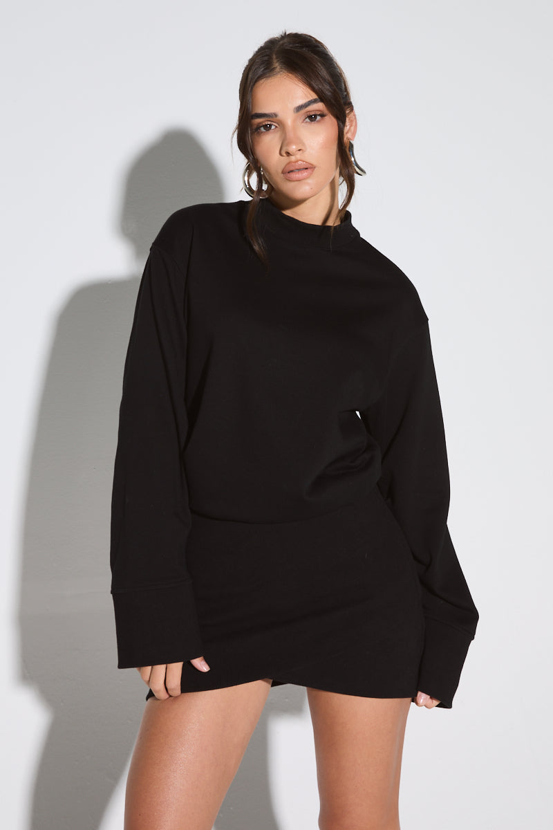 The FRANKIE Black Jumper Dress is designed to hug your figure on the bottom, while providing maximum comfort on top. Featuring a classic Noughts & Kisses design, this Jumper Dress is both comfortable and cool. With its wide sleeves, you'll feel effortlessly chic and sophisticated.