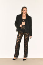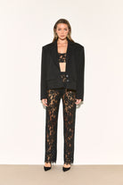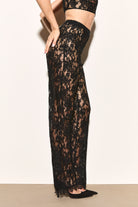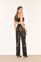 Elevate your style with the DANA Black High Waist Lace Trouser. Crafted from intricate lace, these trousers hug your waist while adding a touch of elegance to every step. Perfect for those who love blending daring fashion with soft, graceful details.