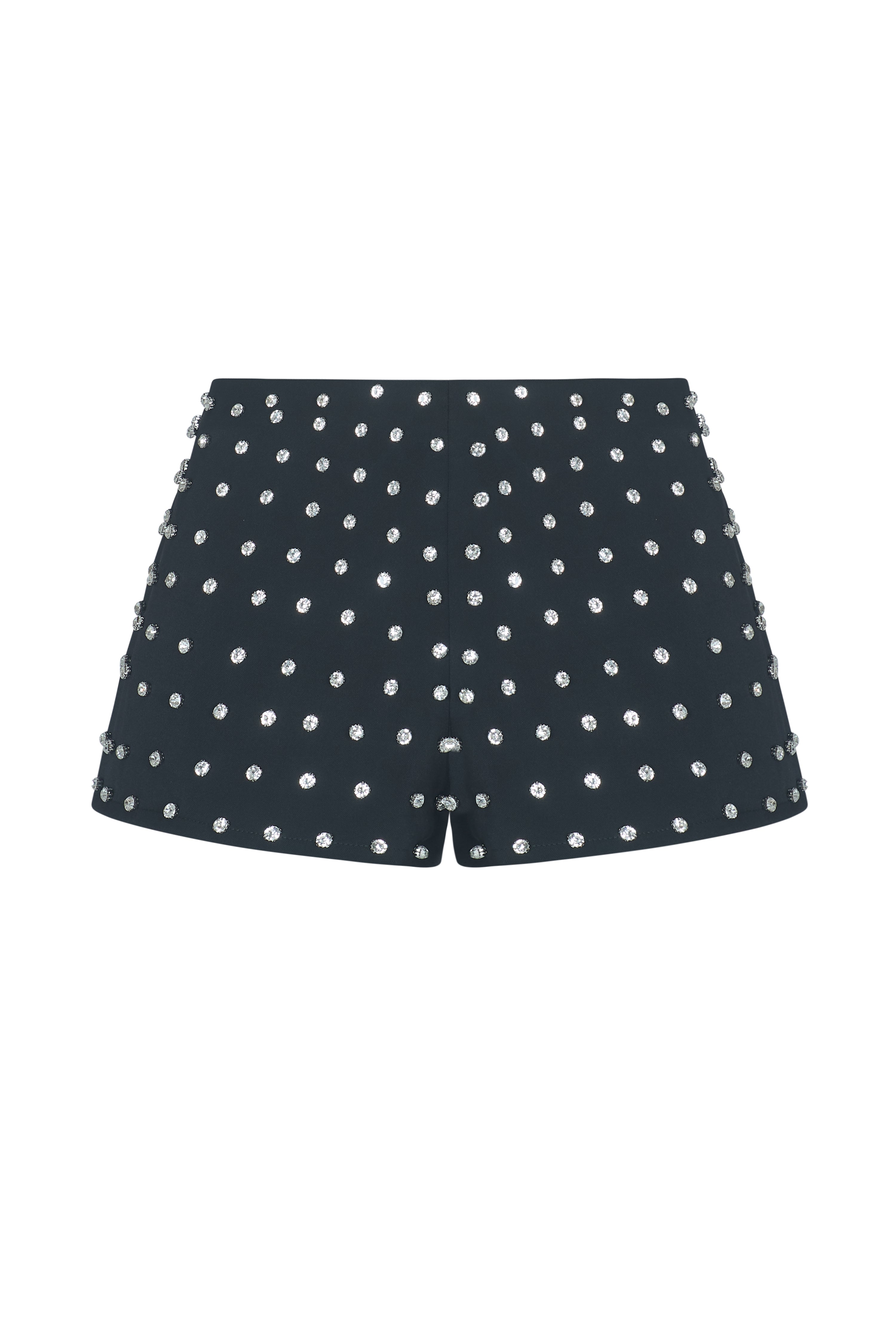 Add a touch of sparkle to your party style with the SAFFIE Black Embellished Shorts. These playful shorts feature eye-catching embellishments that catch the light and elevate any outfit.