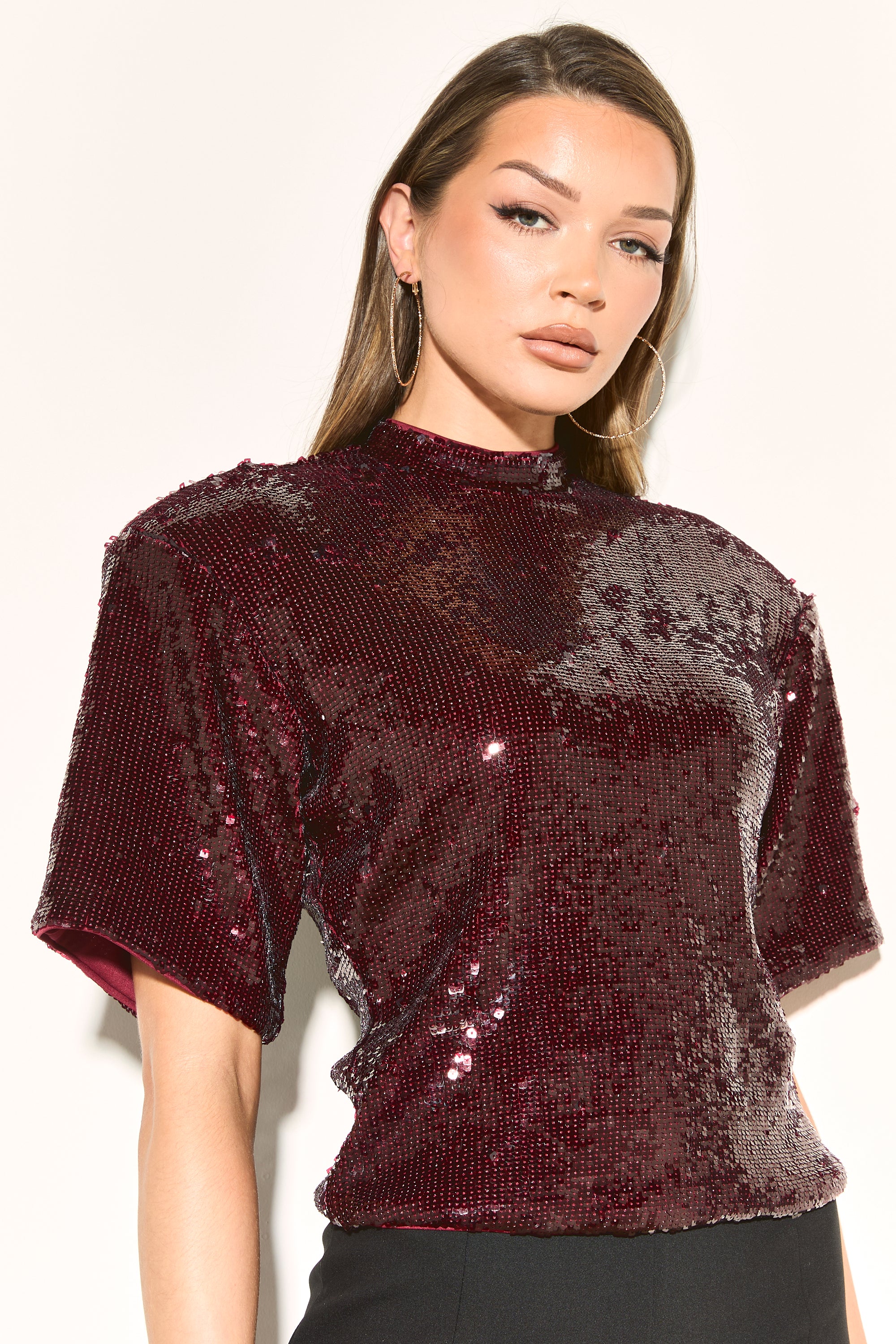 ADA Burgundy Sequin Shoulder Pad T-Shirt