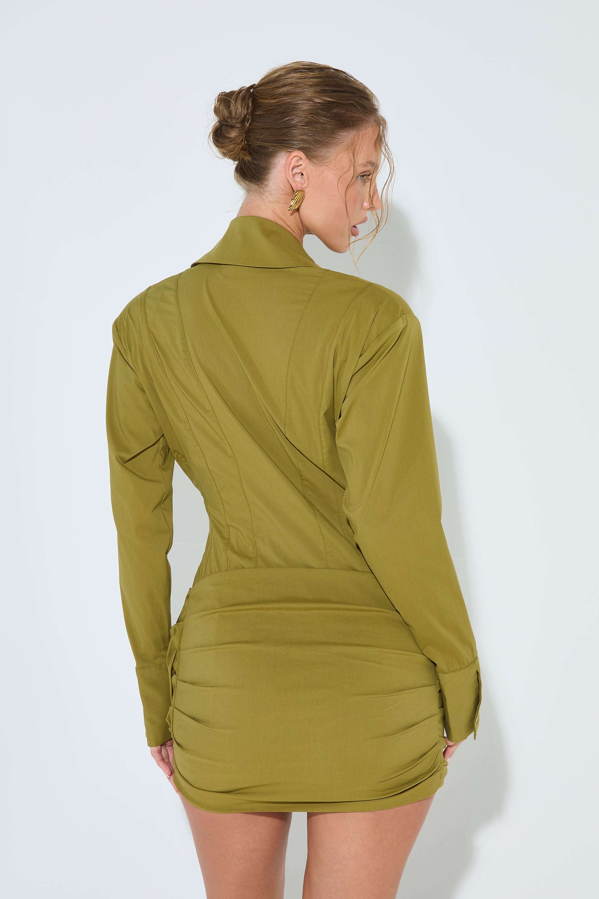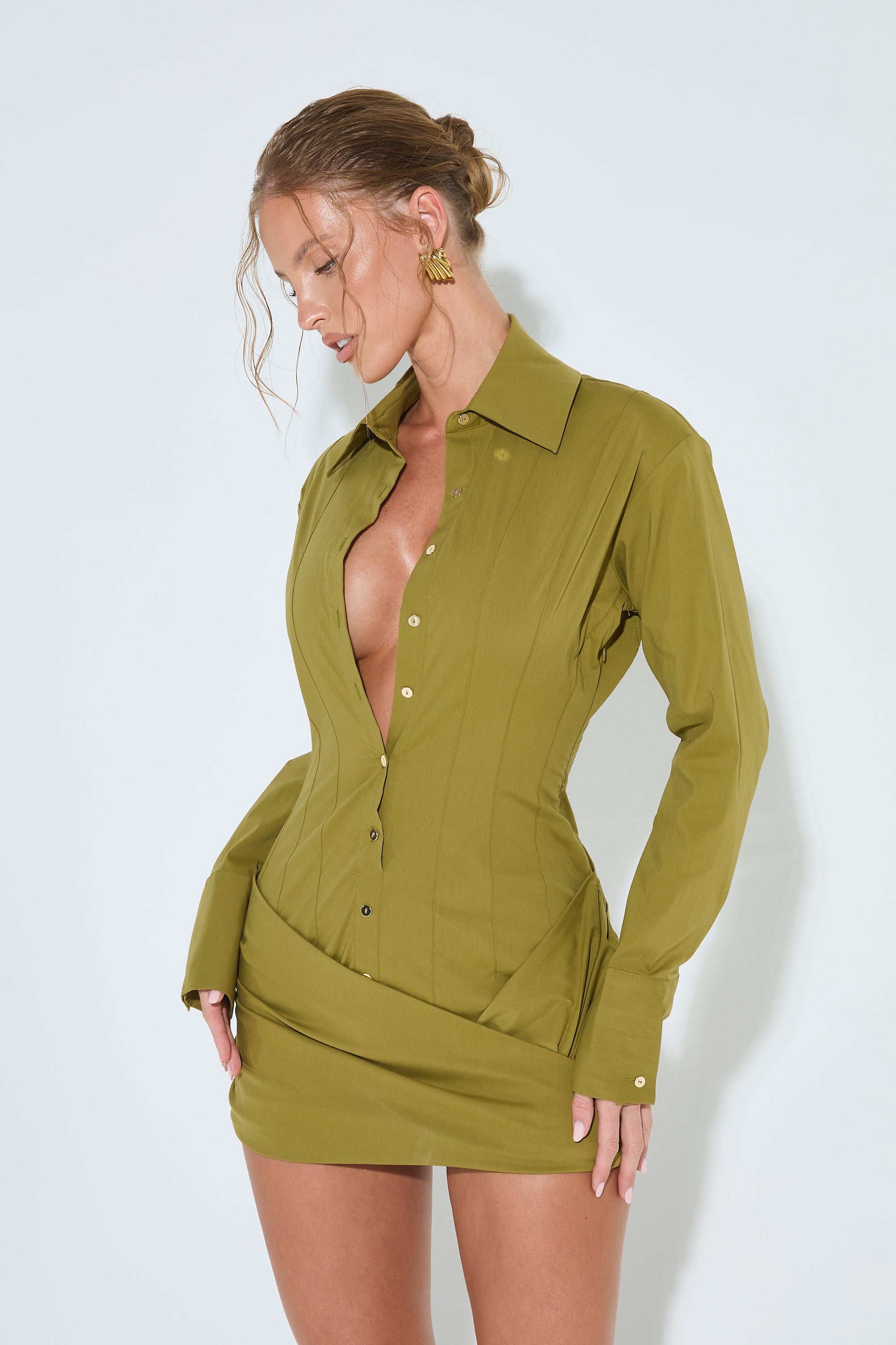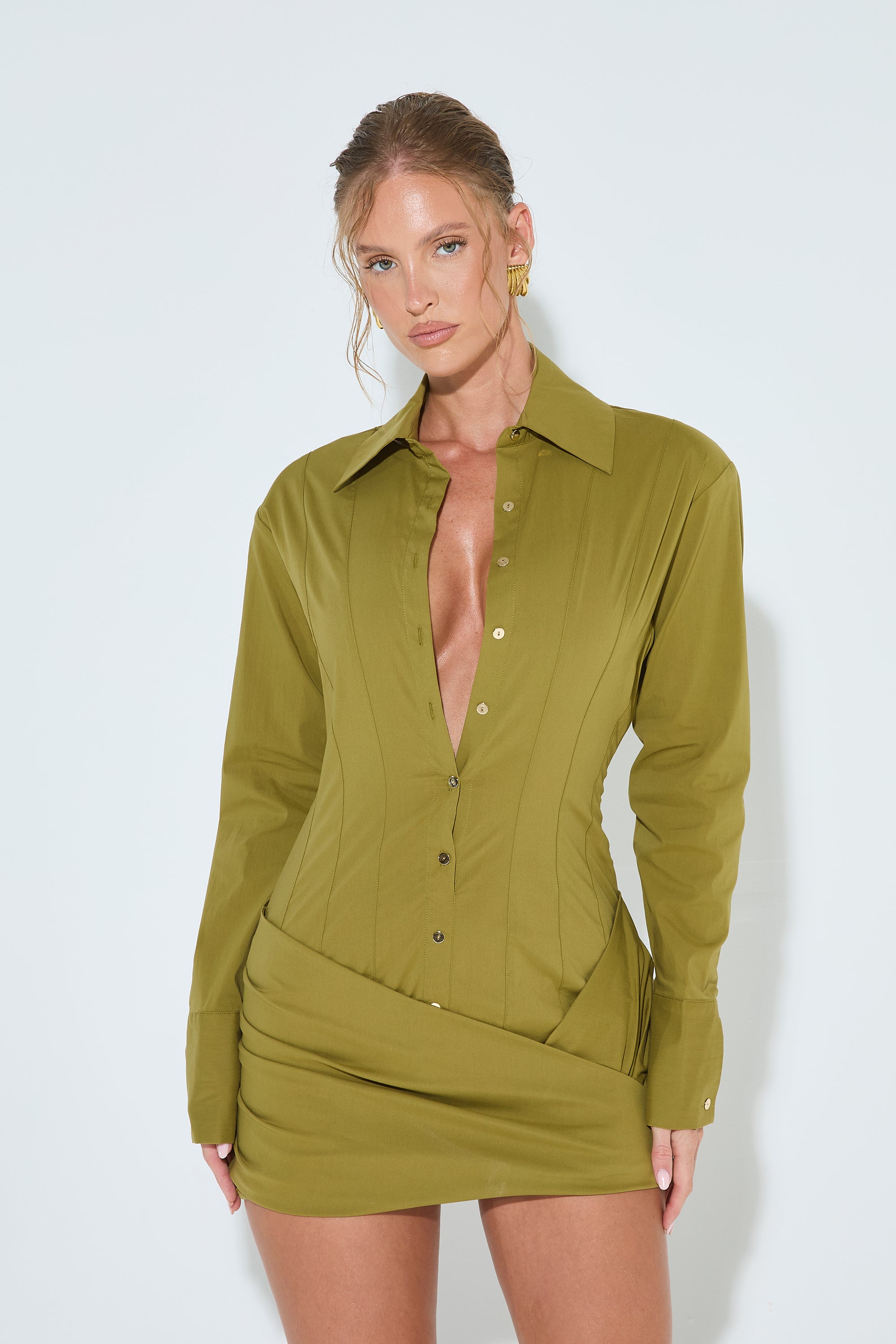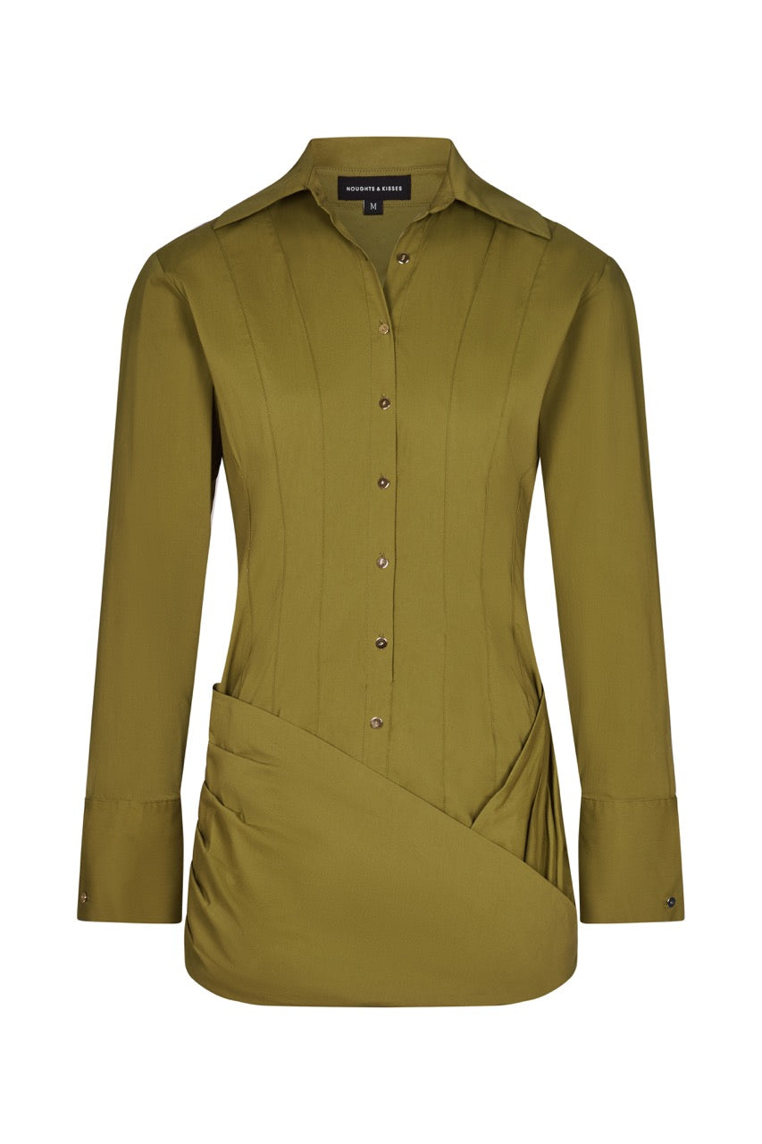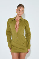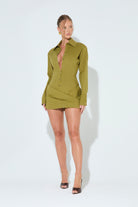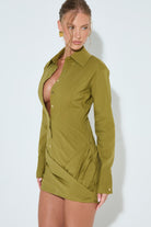 AMARA Olive Wrap Shirt Dress