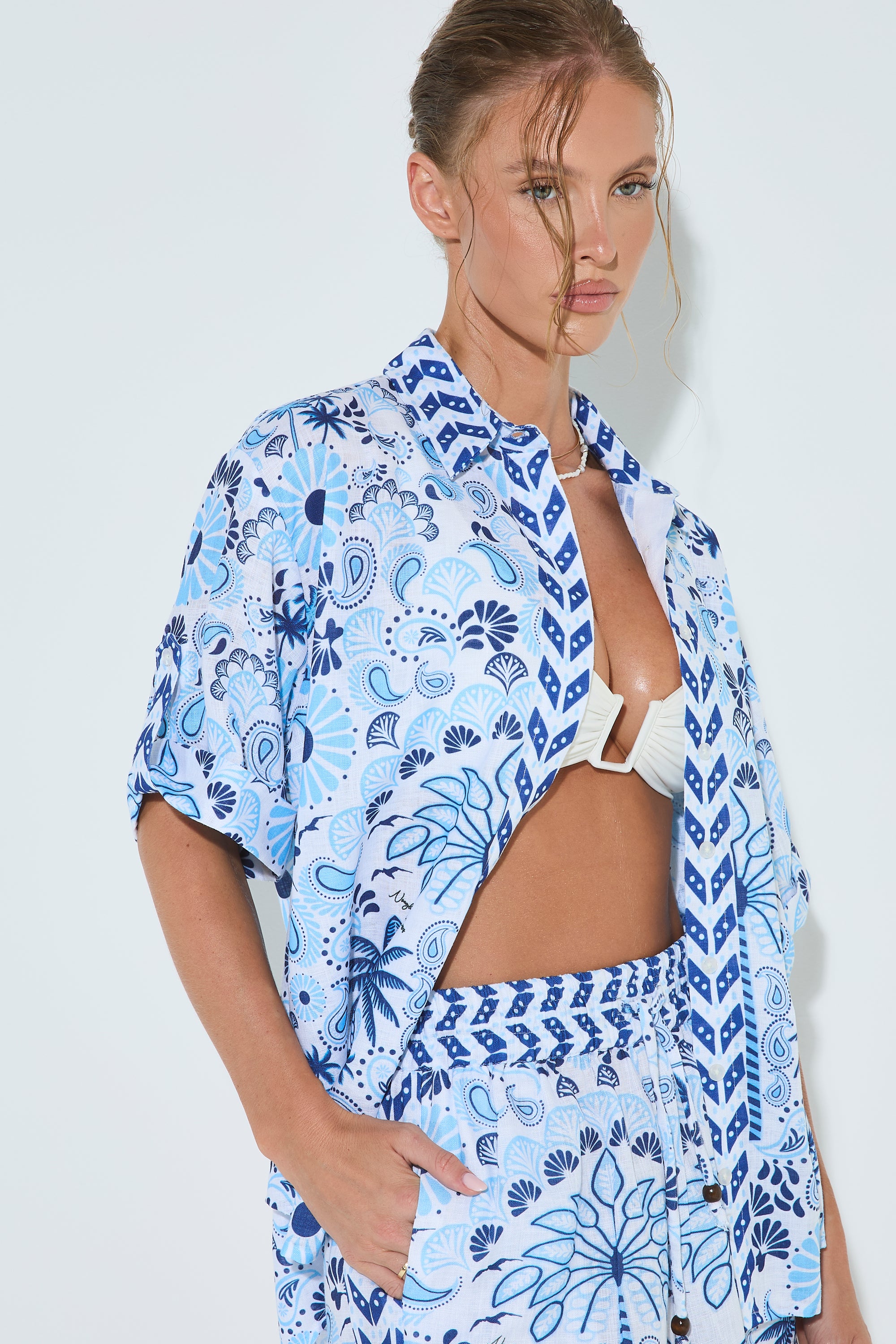 Keep it cool and chic this summer with our sundazed szn collection printed shirt. Made from lightweight, breathable fabric, it showcases vibrant prints that capture the essence of the season. Designed for the effortlessly stylish, it’s the perfect piece for beach days, brunches, or any summer outing.