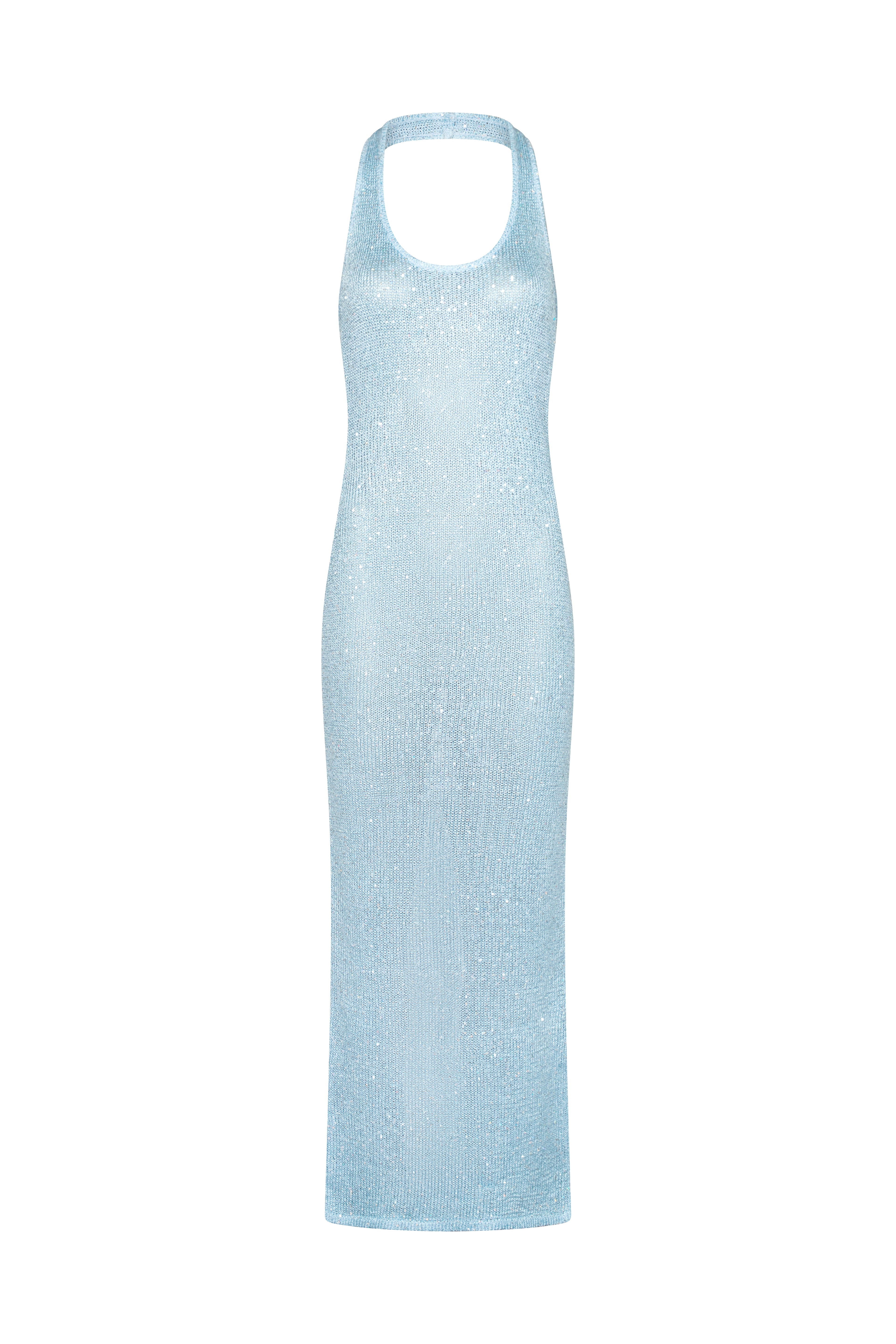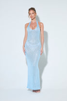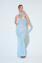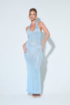 ASTRID Blue Sequin Knit Halter Maxi Dress