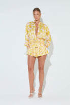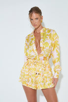 Styled with our CITRUS FLORALS Long Sleeve Printed Shirt