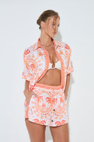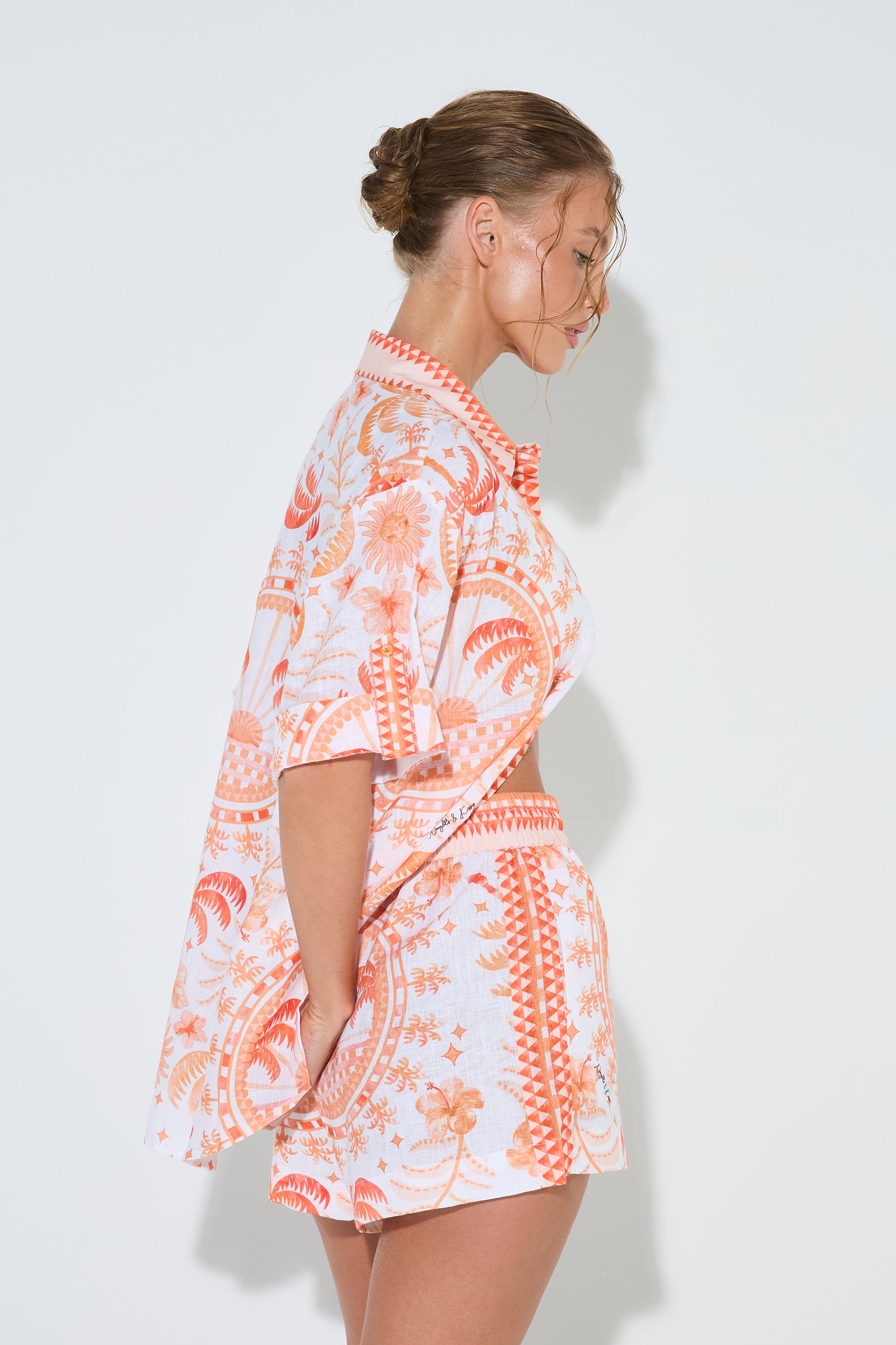 Styled with our HIBISCUS ORANGE Printed Shirt