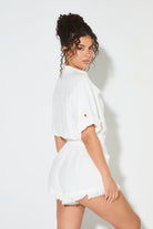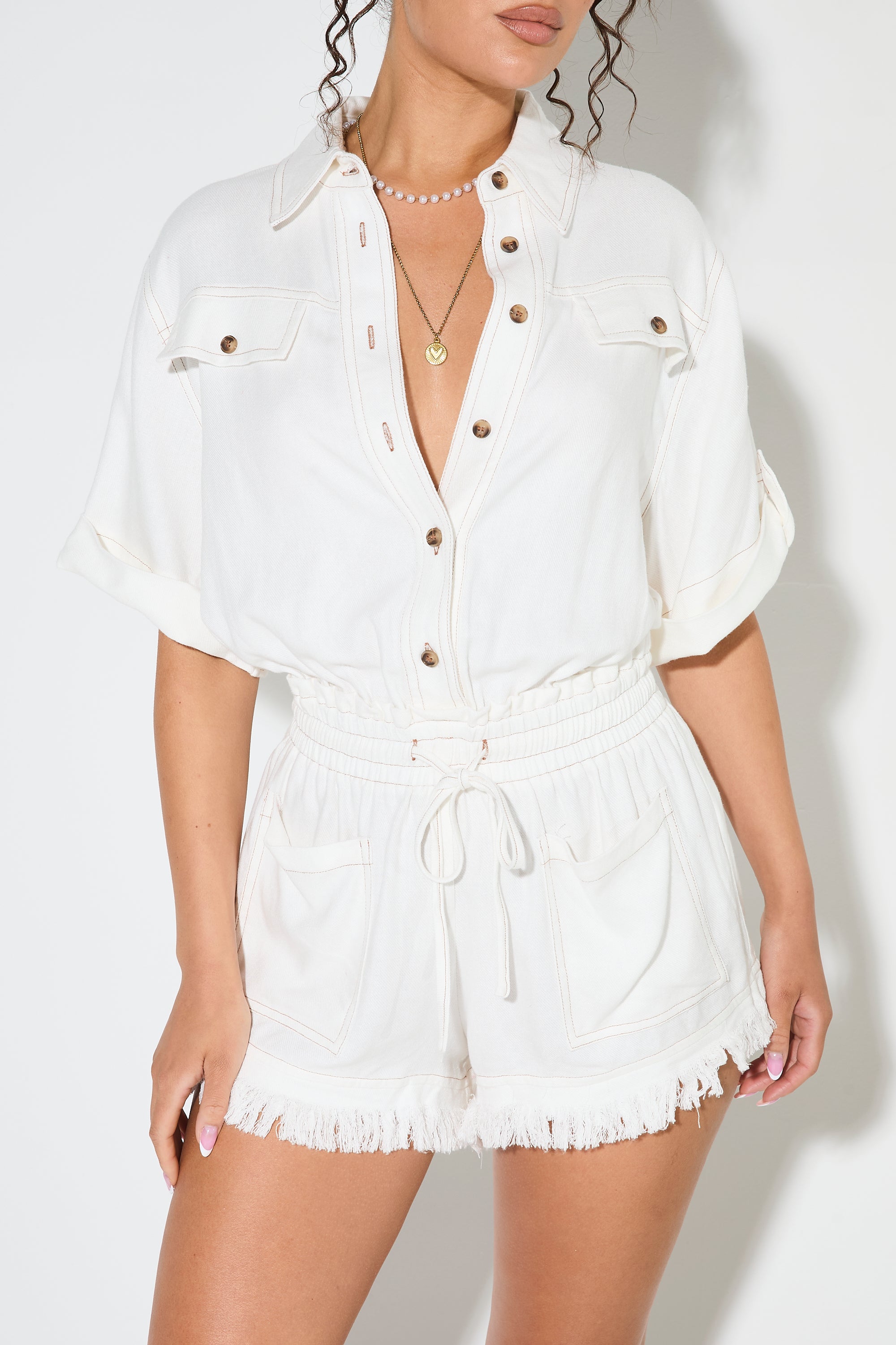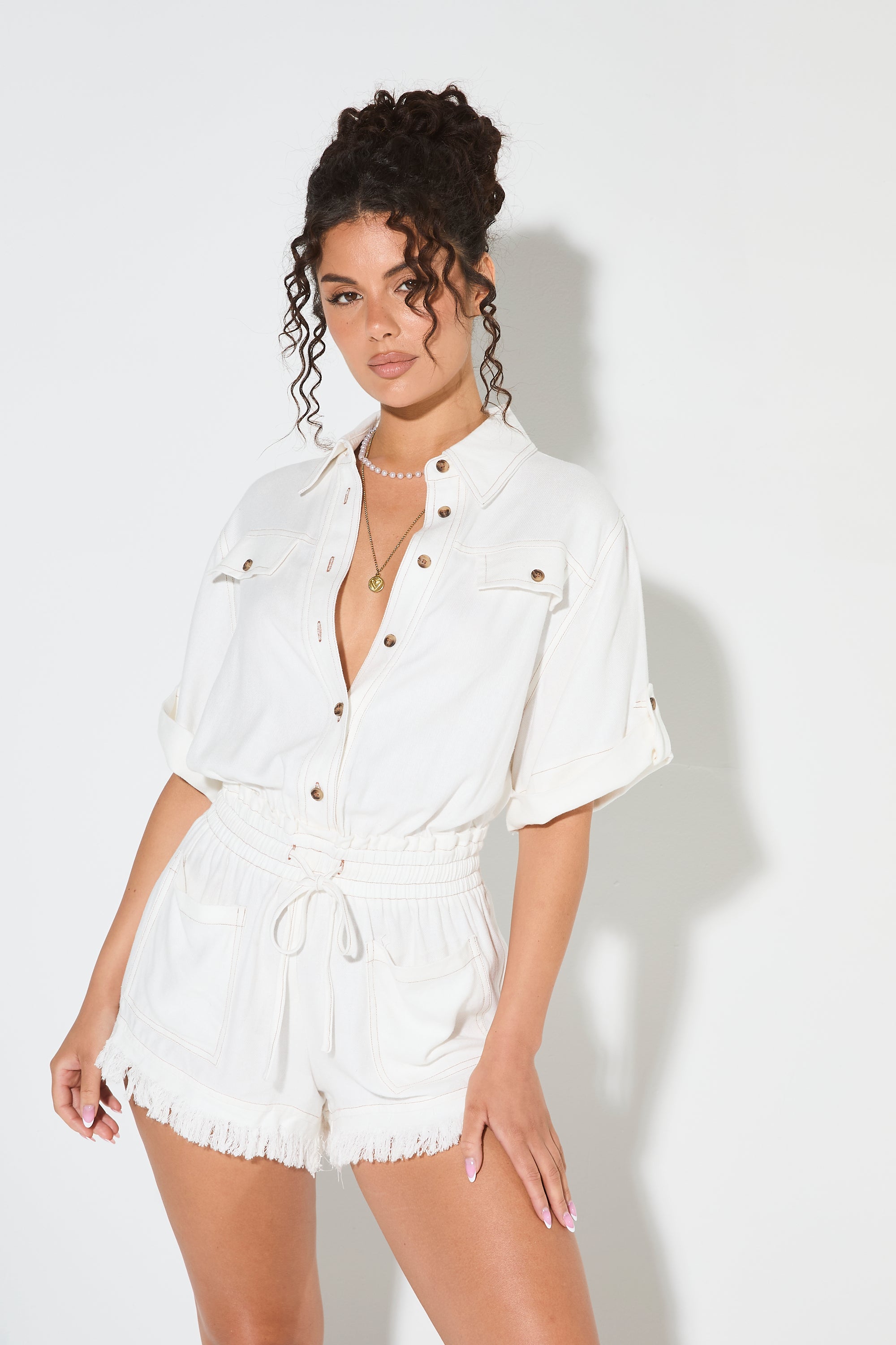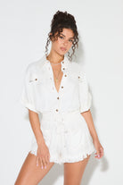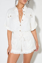 The LOLA White Linen Frayed Playsuit is perfect for the upcoming summer season. Made with high-quality linen fabric, this playsuit is both stylish and comfortable. Its design can be dressed up or down, making it a versatile addition to any wardrobe.
