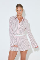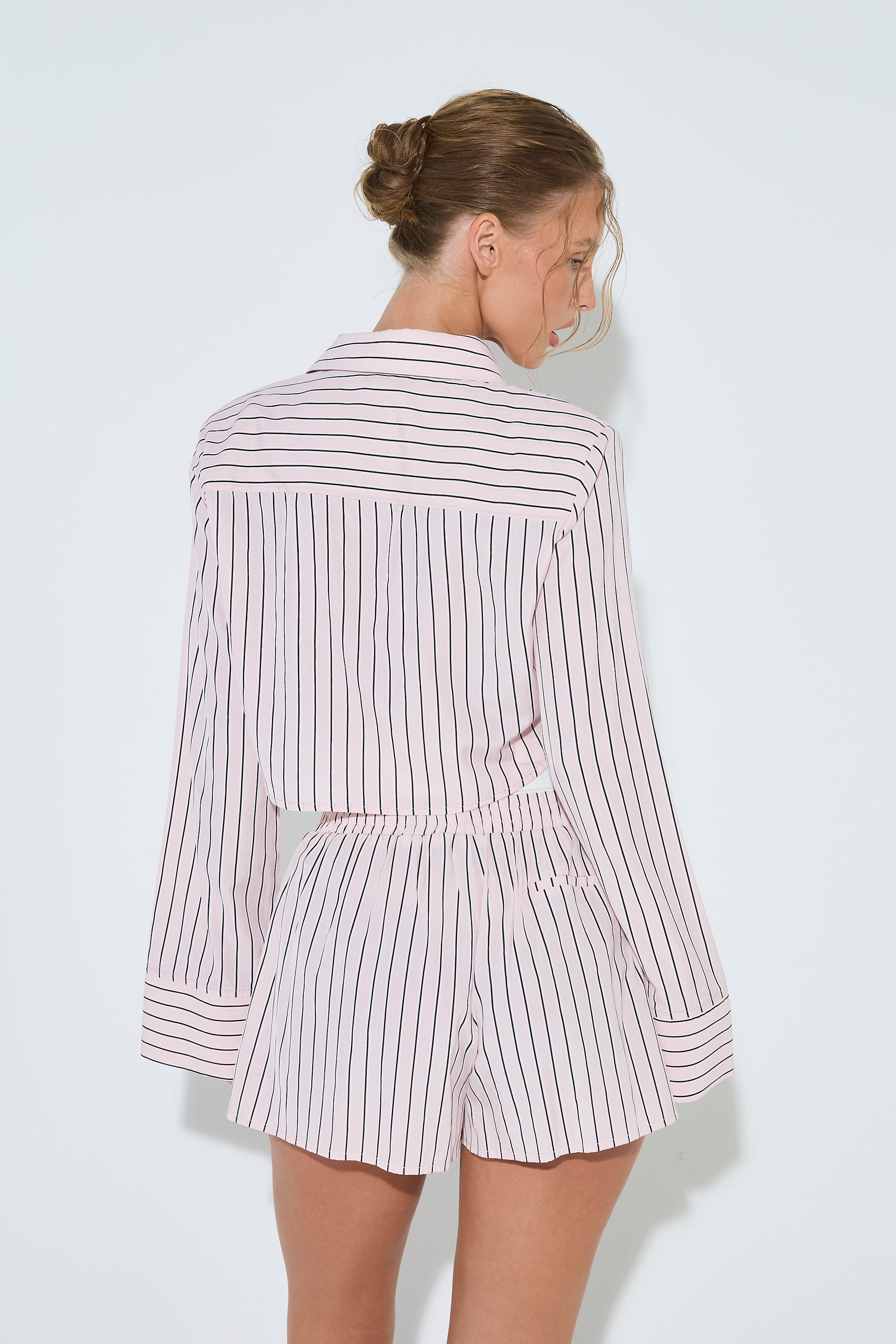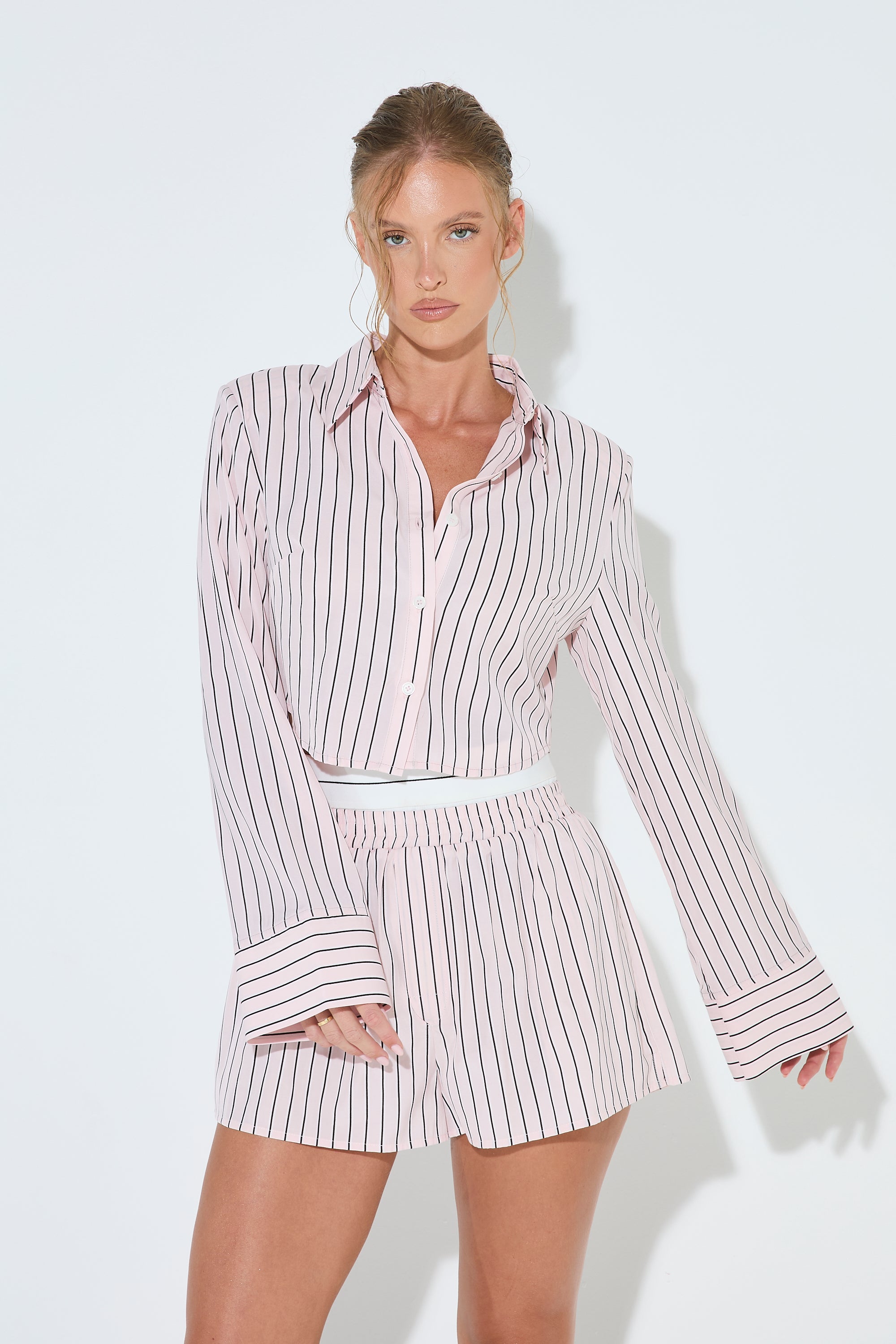 Our ROMA Pink Stripe Crop Shirt is a must-have for this season. Its on-trend design makes it the perfect spring/summer essential. Elevate your wardrobe with this stylish and versatile piece.