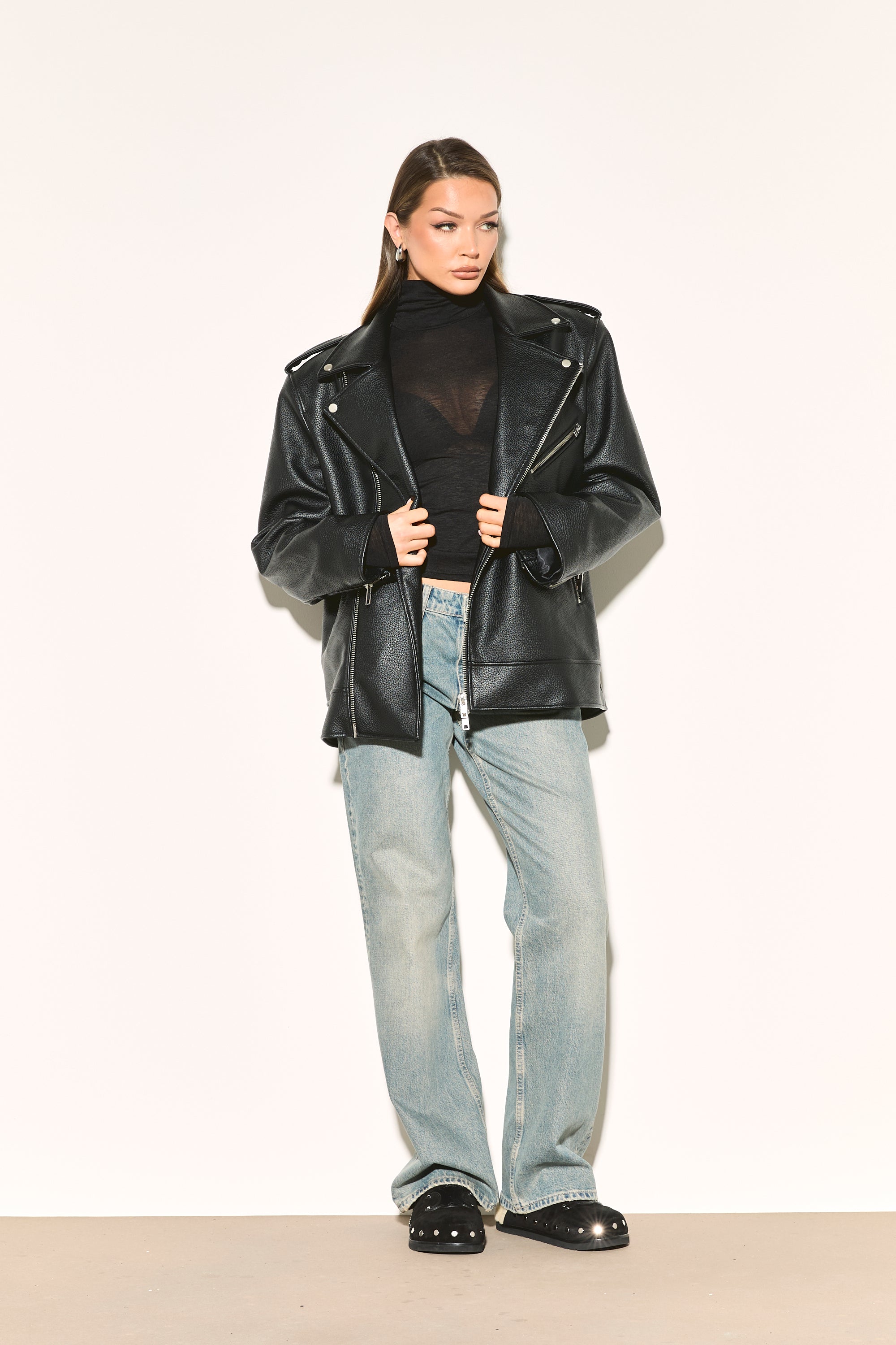 IRIS Black Oversized Vegan Leather Jacket