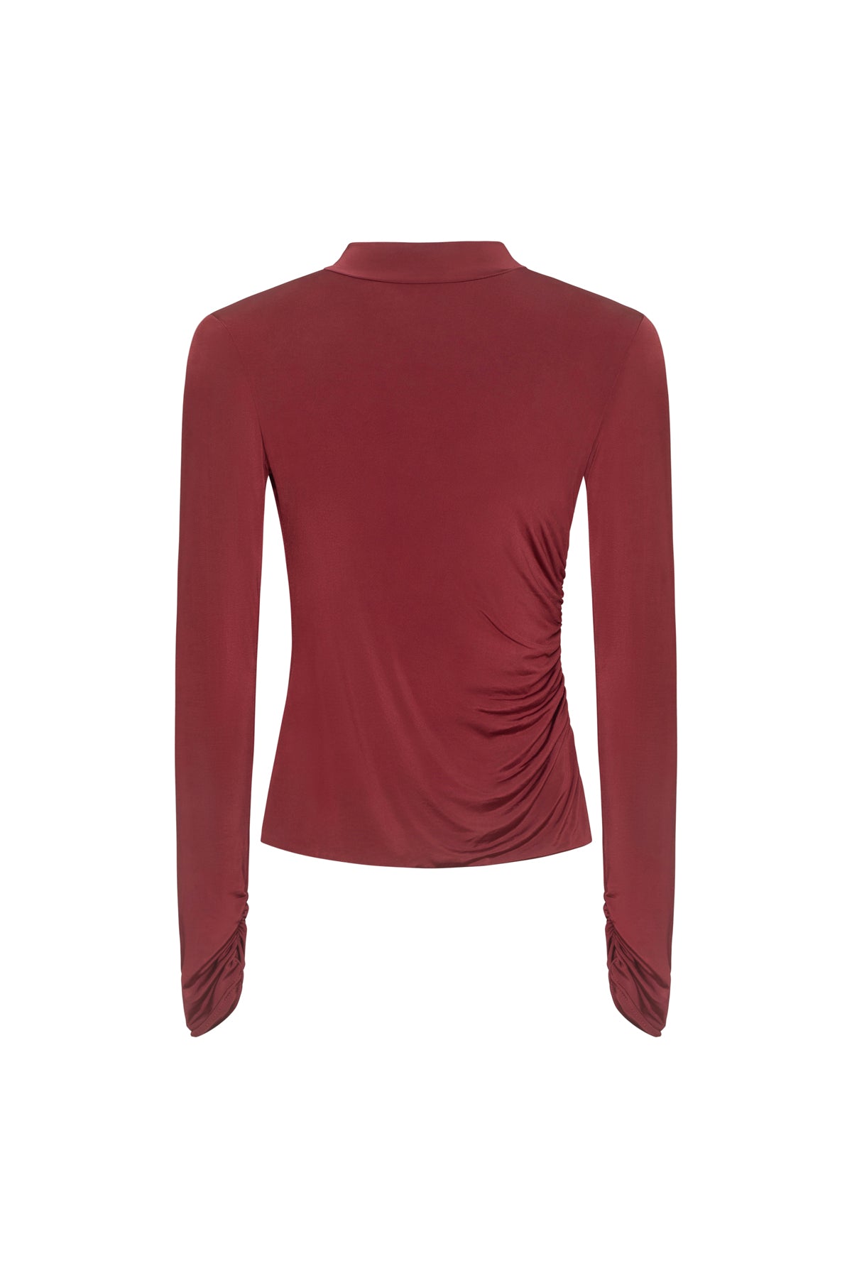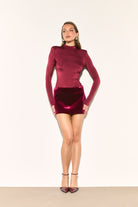Our ELLE Burgundy Stretch Shoulder Pad Top timeless top is the perfect wardrobe staple. Soft and comfortable, this top features shoulder pads to give your look a touch of extra sophistication. An essential for any A/W wardrobe!