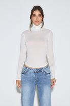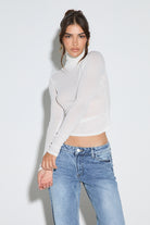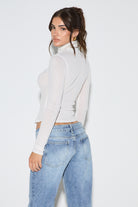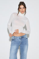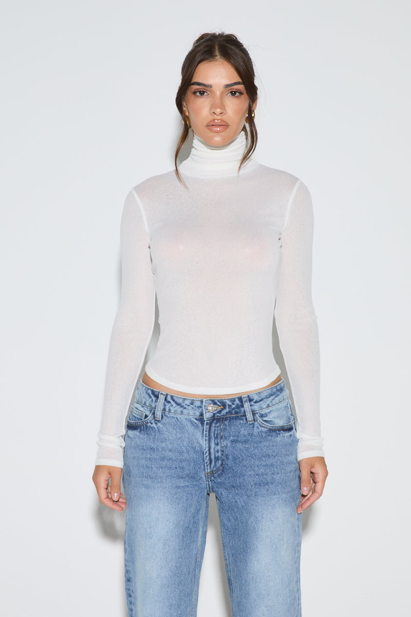 Elevate your wardrobe with our GINA White Fine Knit Polo Neck. Crafted with a sheer knit, this classic basic exudes an air of sophistication. Perfect for layering or wearing on its own.