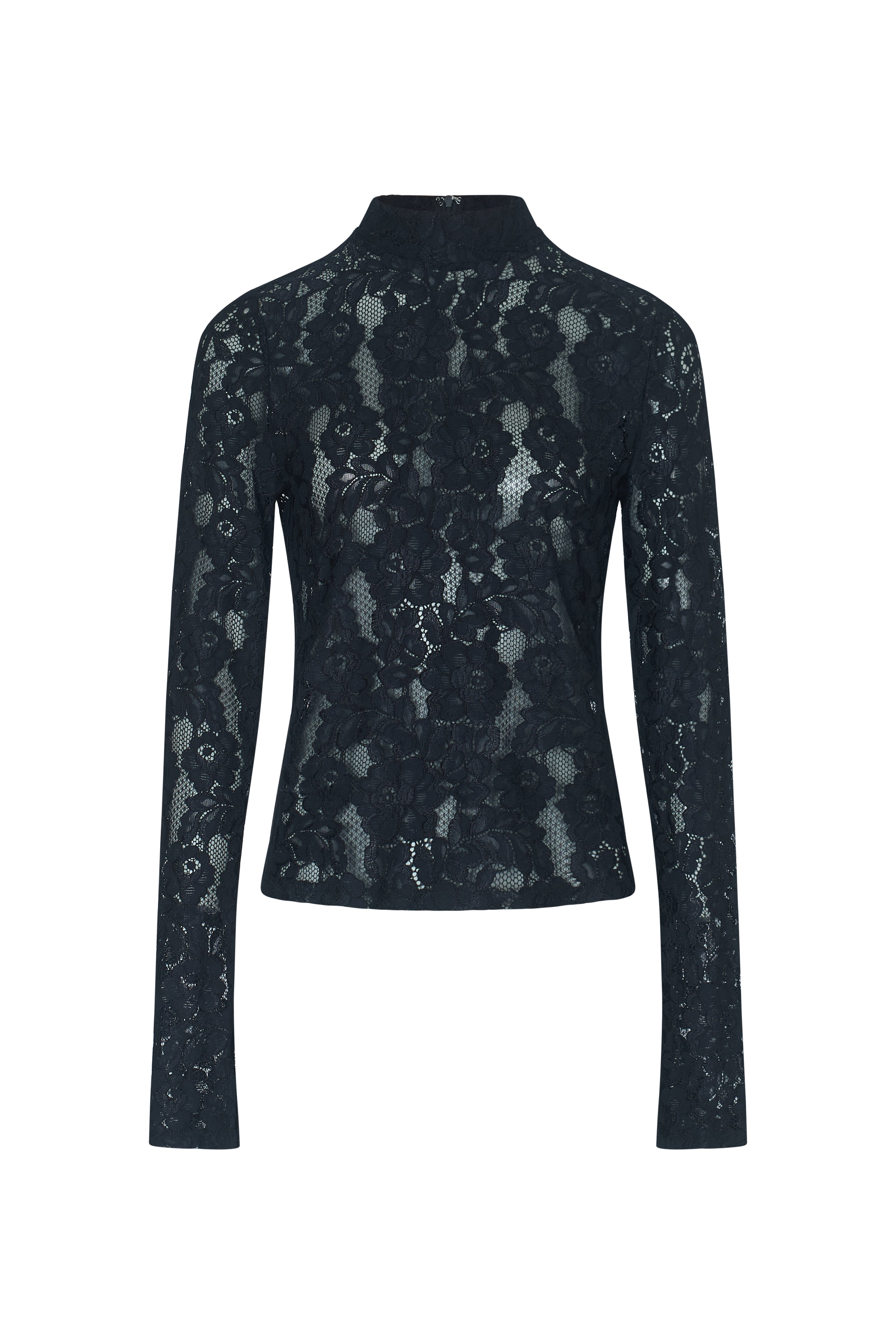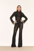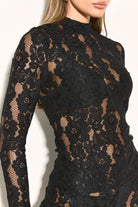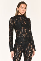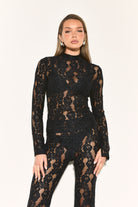 Elevate your wardrobe with the IMANI Black High Neck Lace Top, where delicate lace meets bold design. Its structured silhouette adds a playful edge to the intricate lace pattern.