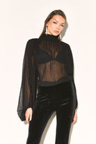 NATALIA Black High Neck Chiffon Blouse
